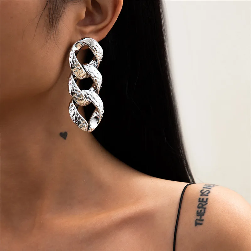 Simple Atmospheric Single-layer Tassel Necklace Women Jewelry For Exaggeration Personality CCB Chain Buckle Necklace Earring Set