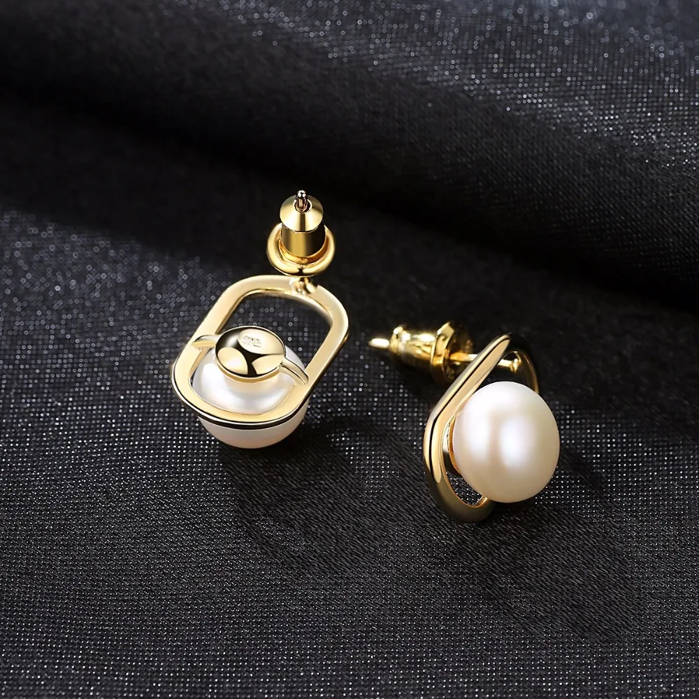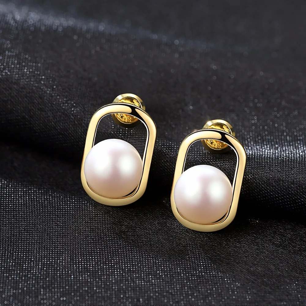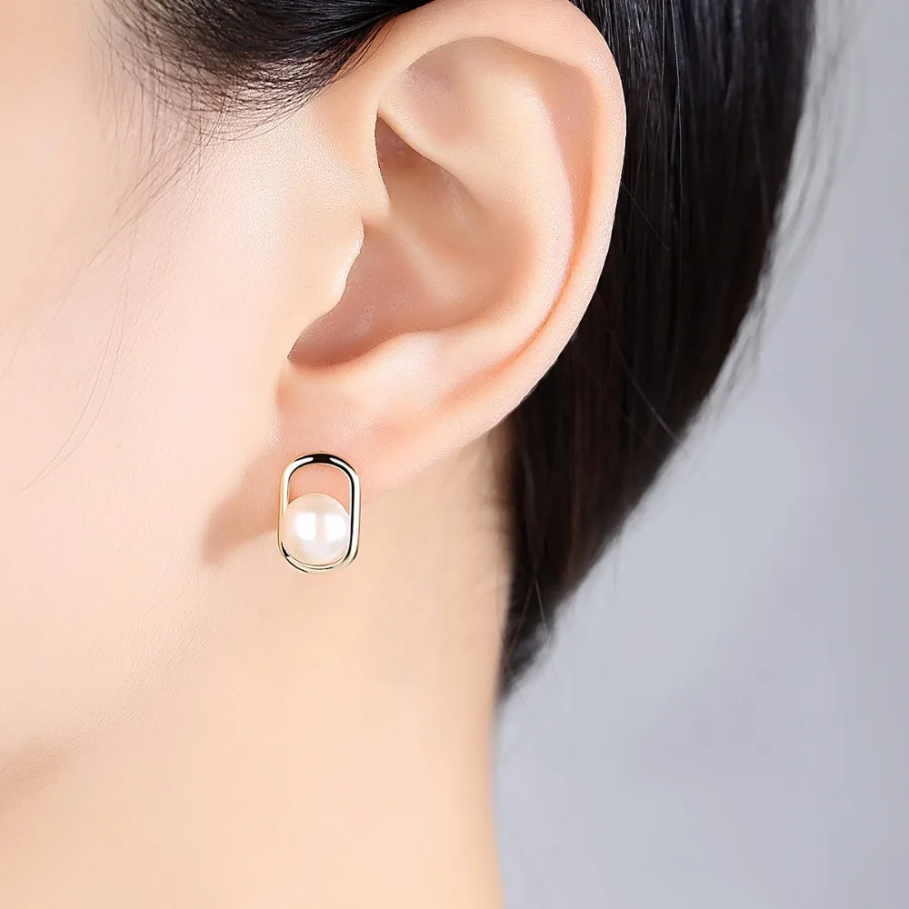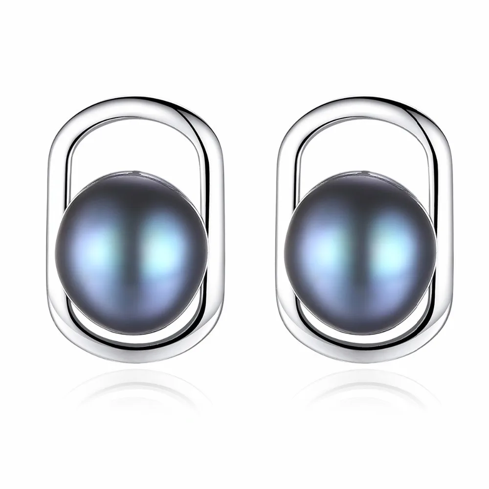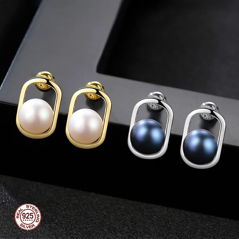 Simple&Elegant 925 sterling silver stud earrings with Natural pearl 2 colors Beautiful birthd Gift