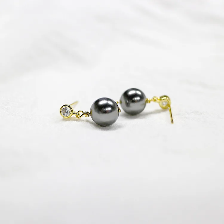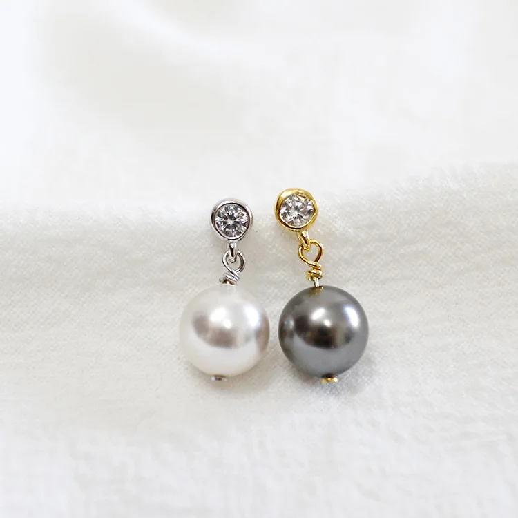 Simple Shell Pearl CZ 925 Sterling Silver Dangling Earrings