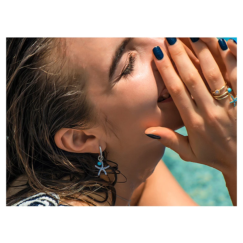 • Items name: 925 Sterling silver blue CZ starfish design dangle earrings