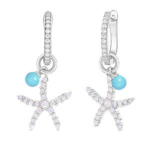 starfish design dangle earrings in Sterling silver setting blue CZ or white tourmaline add turquoise dangles