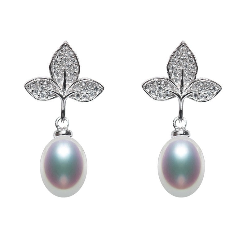 7.5-8mm Genuine Drop Shaped White Pearl Earrings For Women S925 Sterling Silver Fashion Jewelry