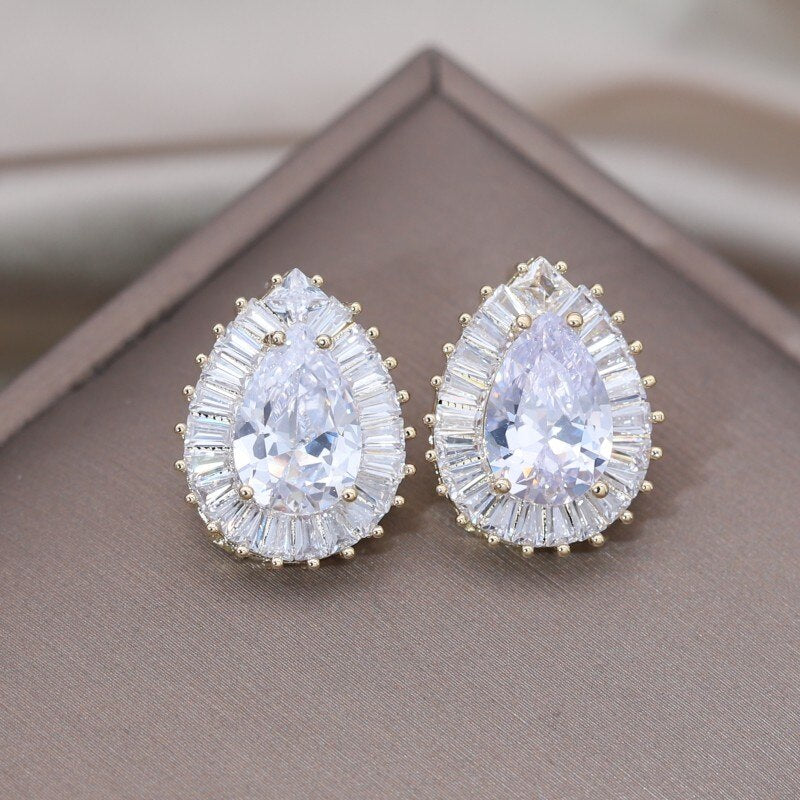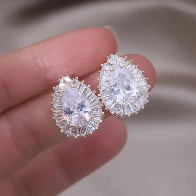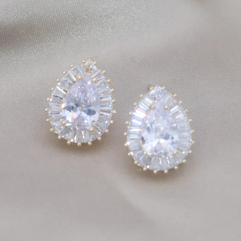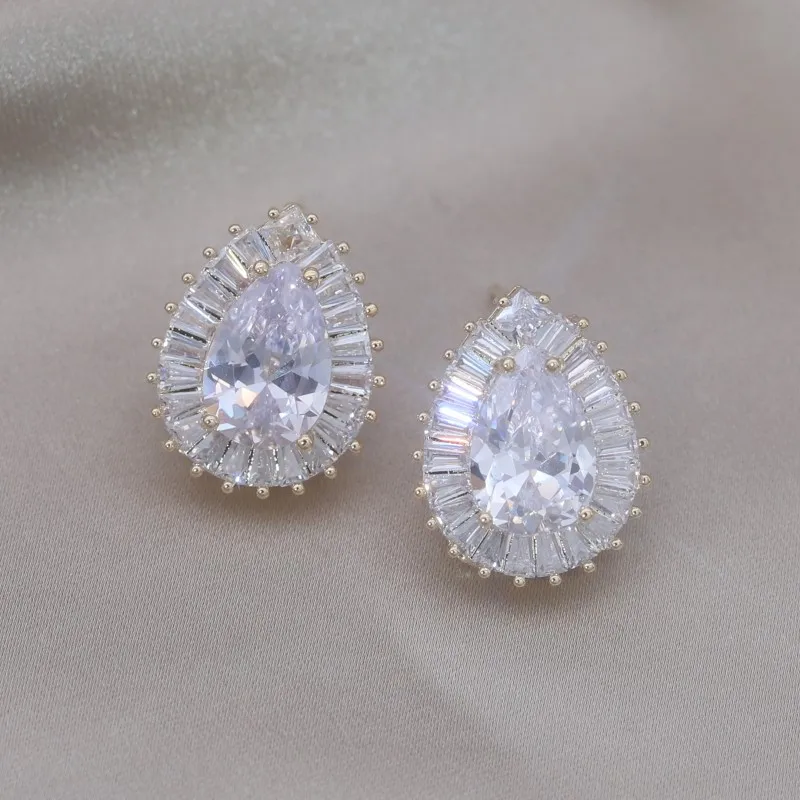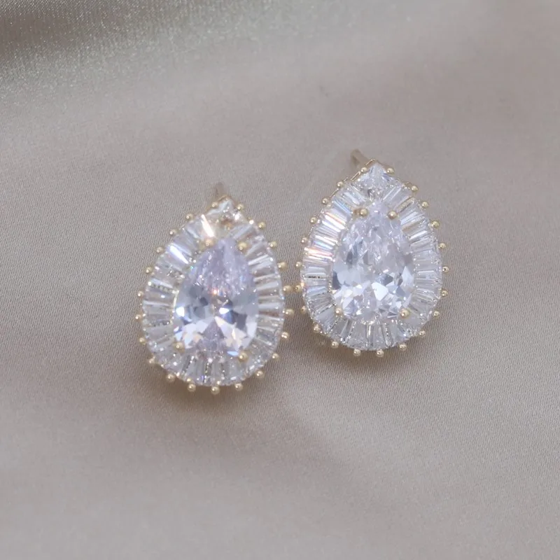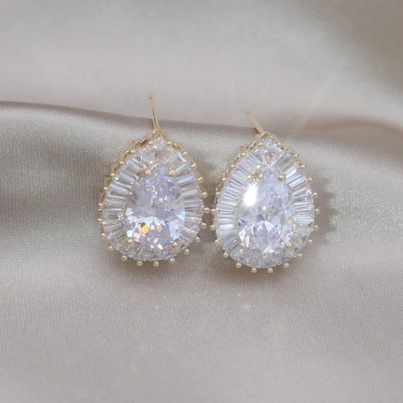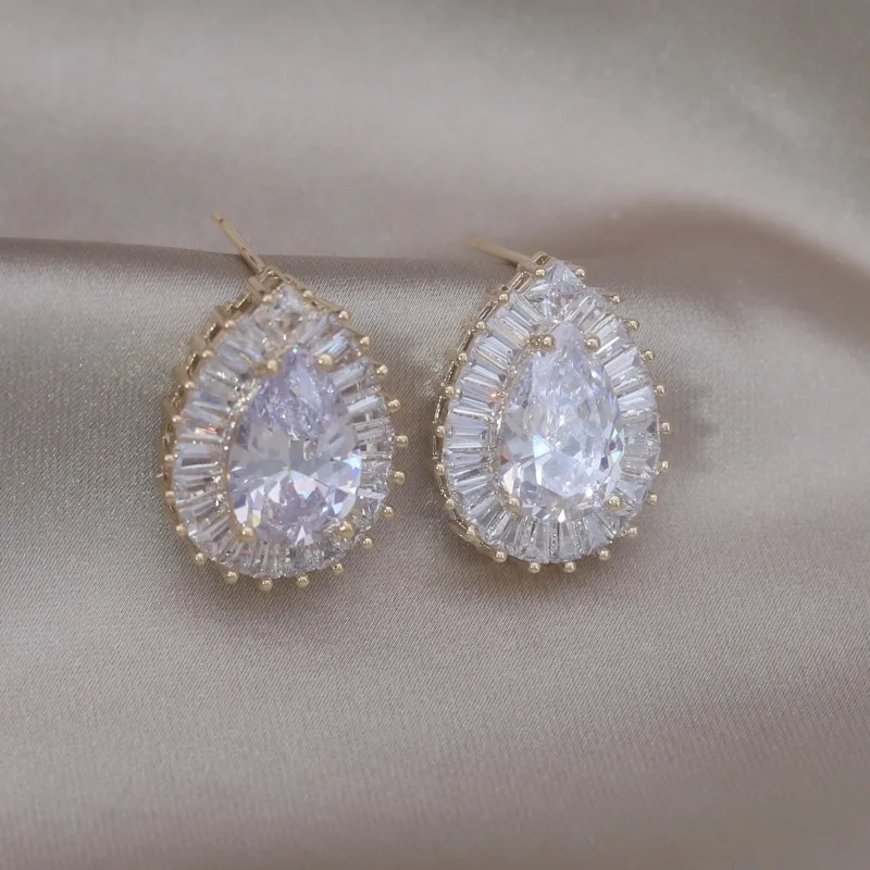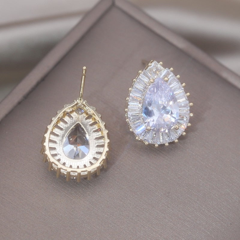 South Korea Design Jewelry 14K Gold Plating Zircon Water Drop Earrings Elegant Women's Party Accessories