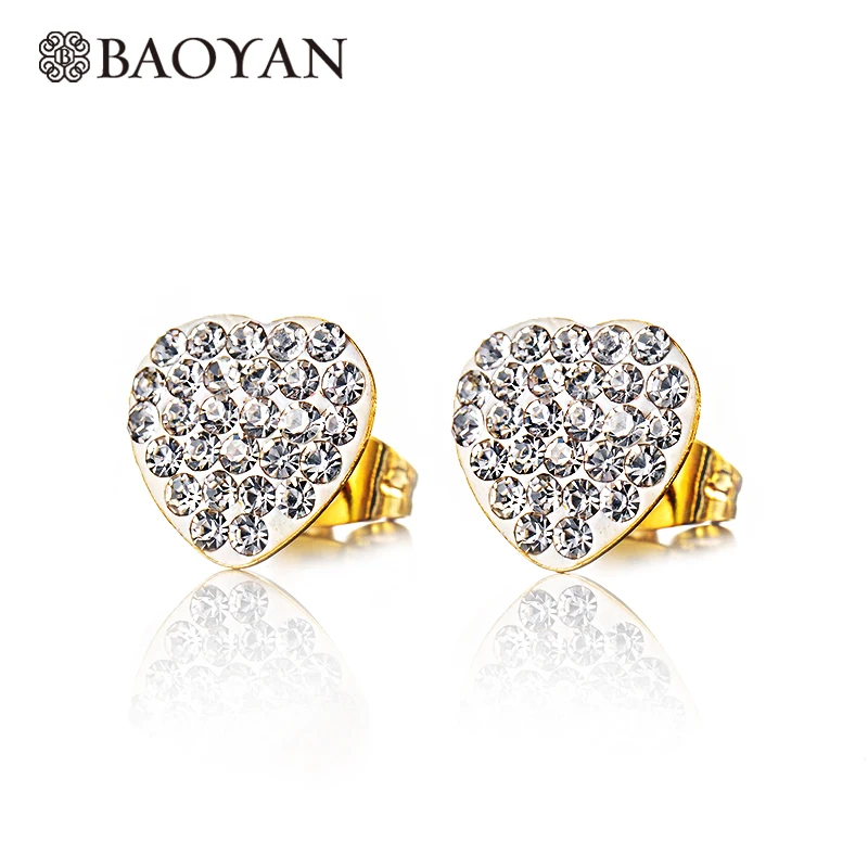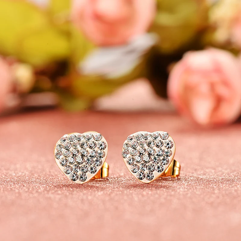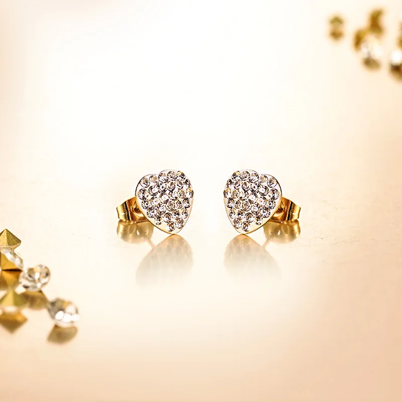 Gold Color Stainless Steel Heart Design Stud Earrings For Women Pave Setting High Quality Crystal Stud Earring For Women