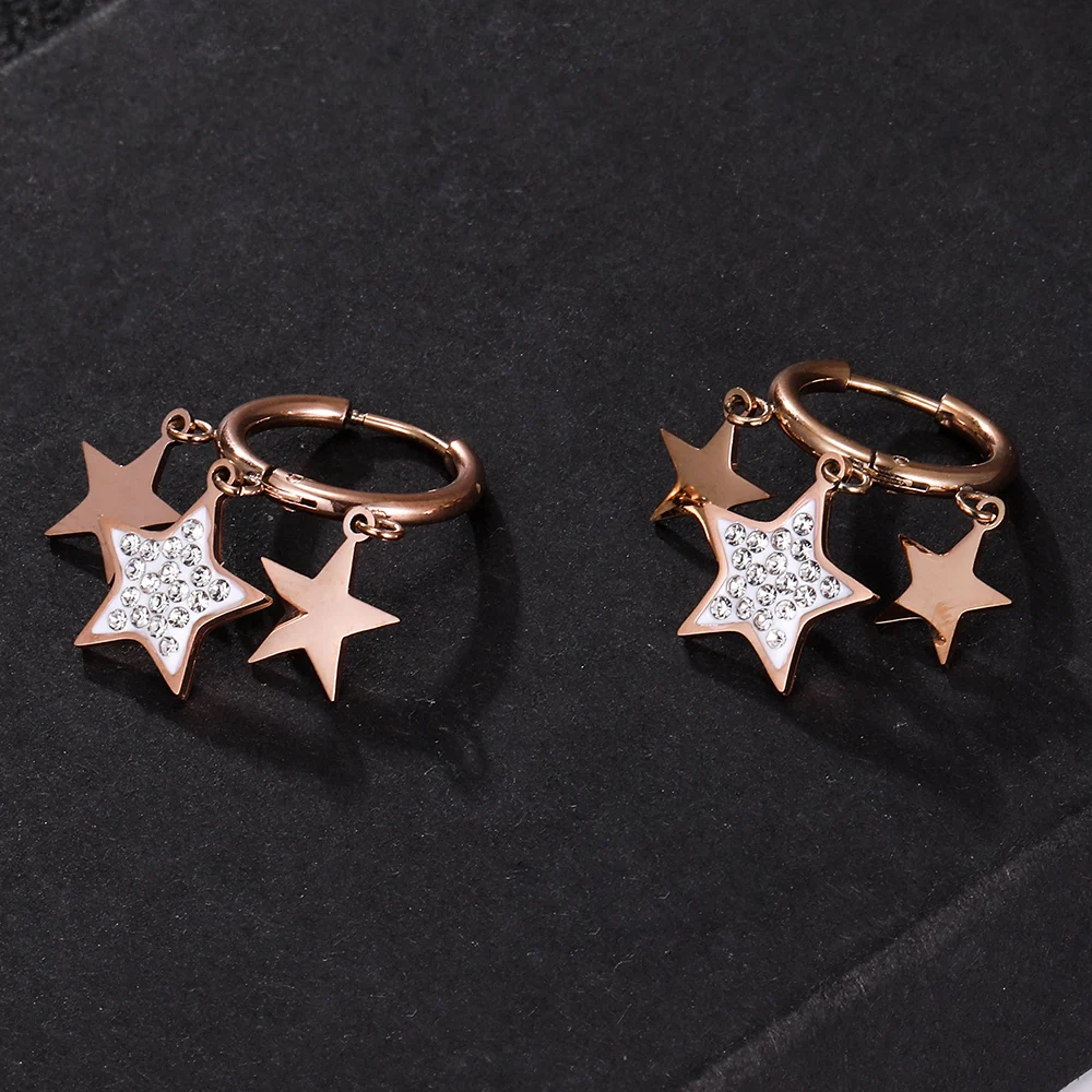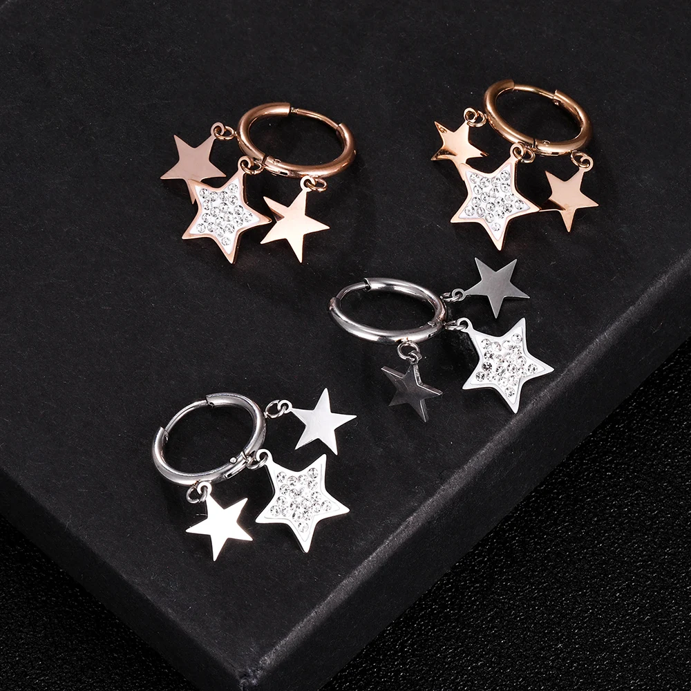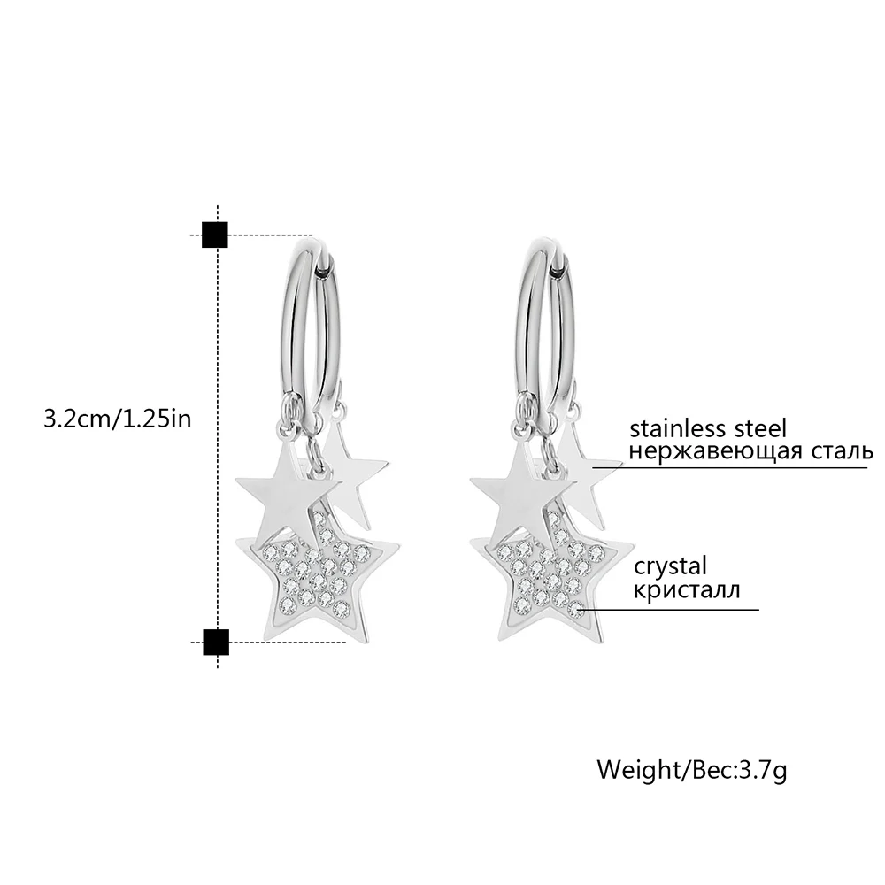 Stainless Steel Multi-Star Hoop Earrings For Women Classic Gold Color Crystal Five-pointed Star Earrings Jewelry Gift
