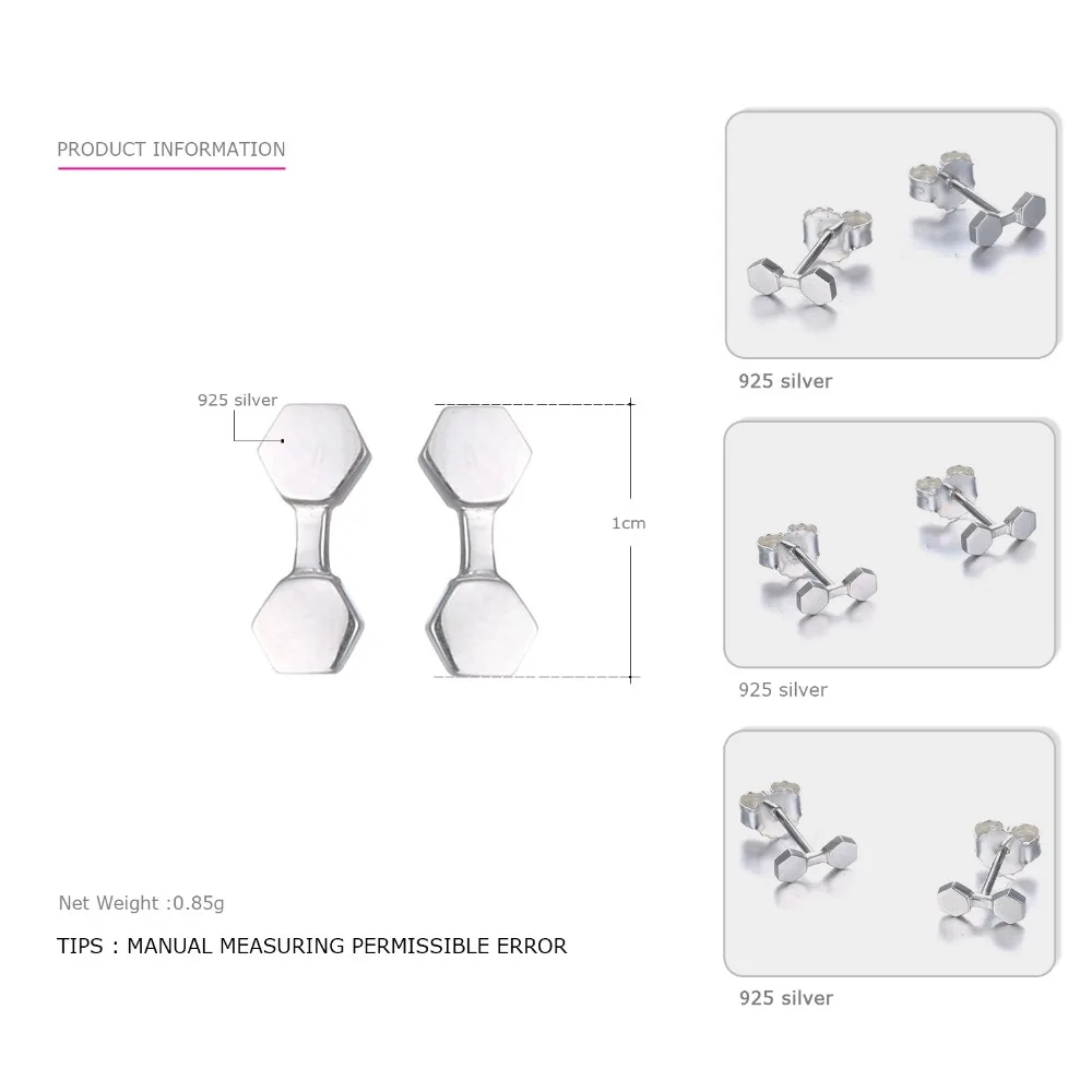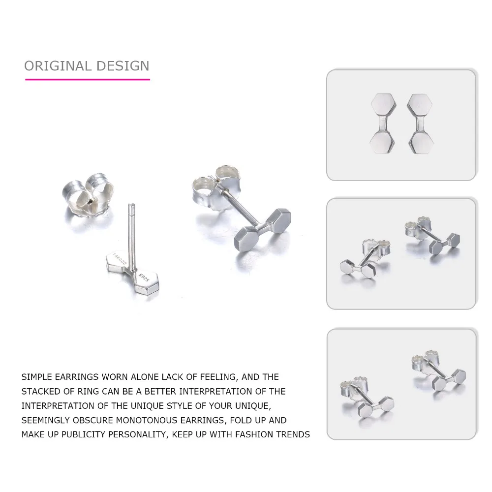 Really 925 Sterling Silver Stud Earrings for Women Geometric Shape Simple and Cute Style Fine Jewelry