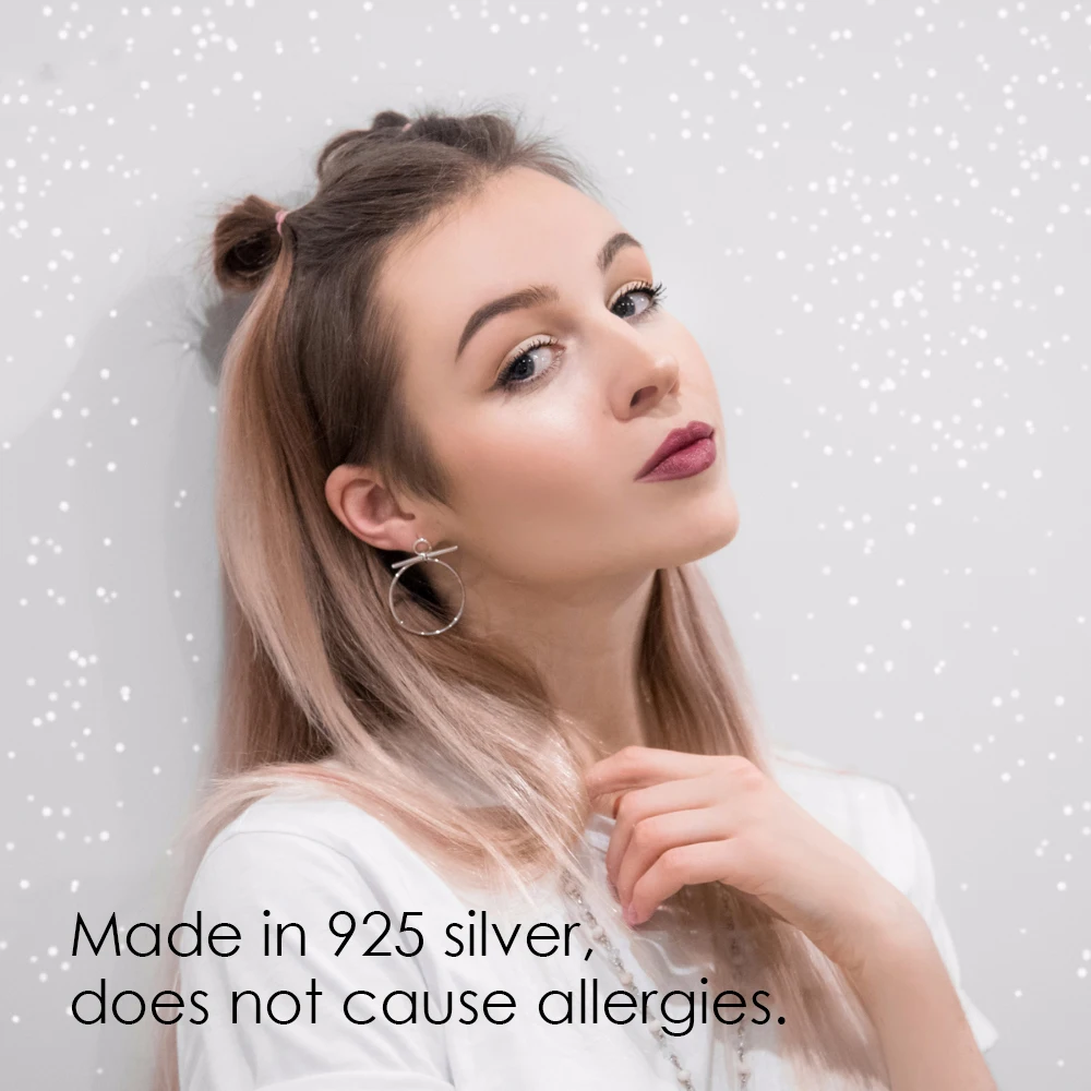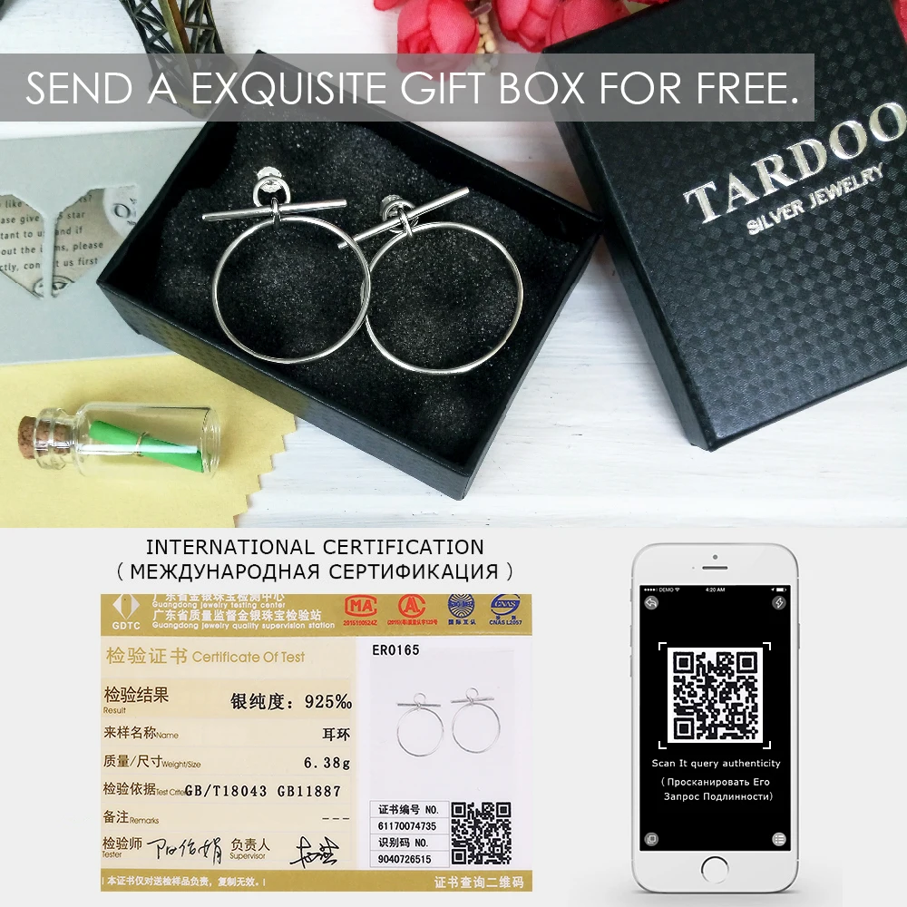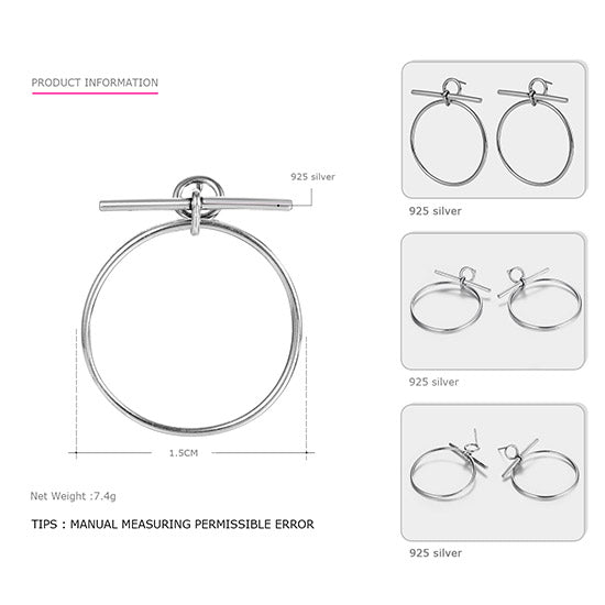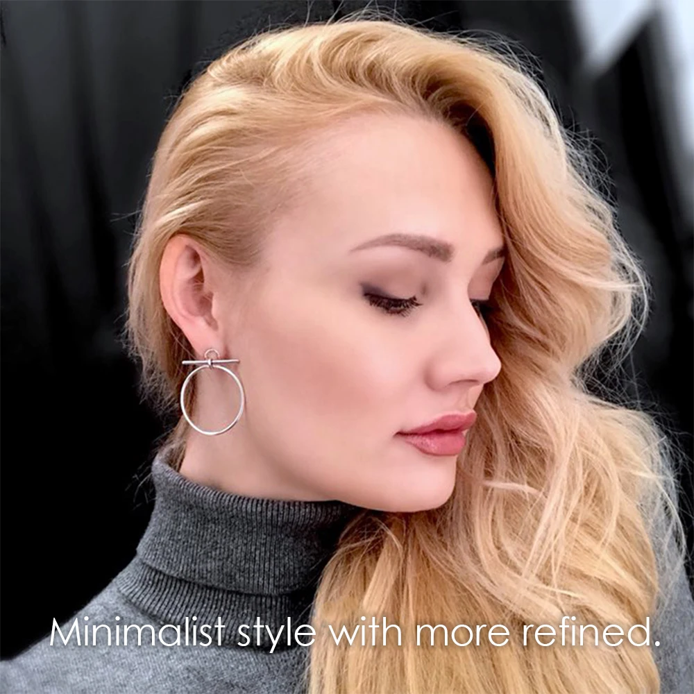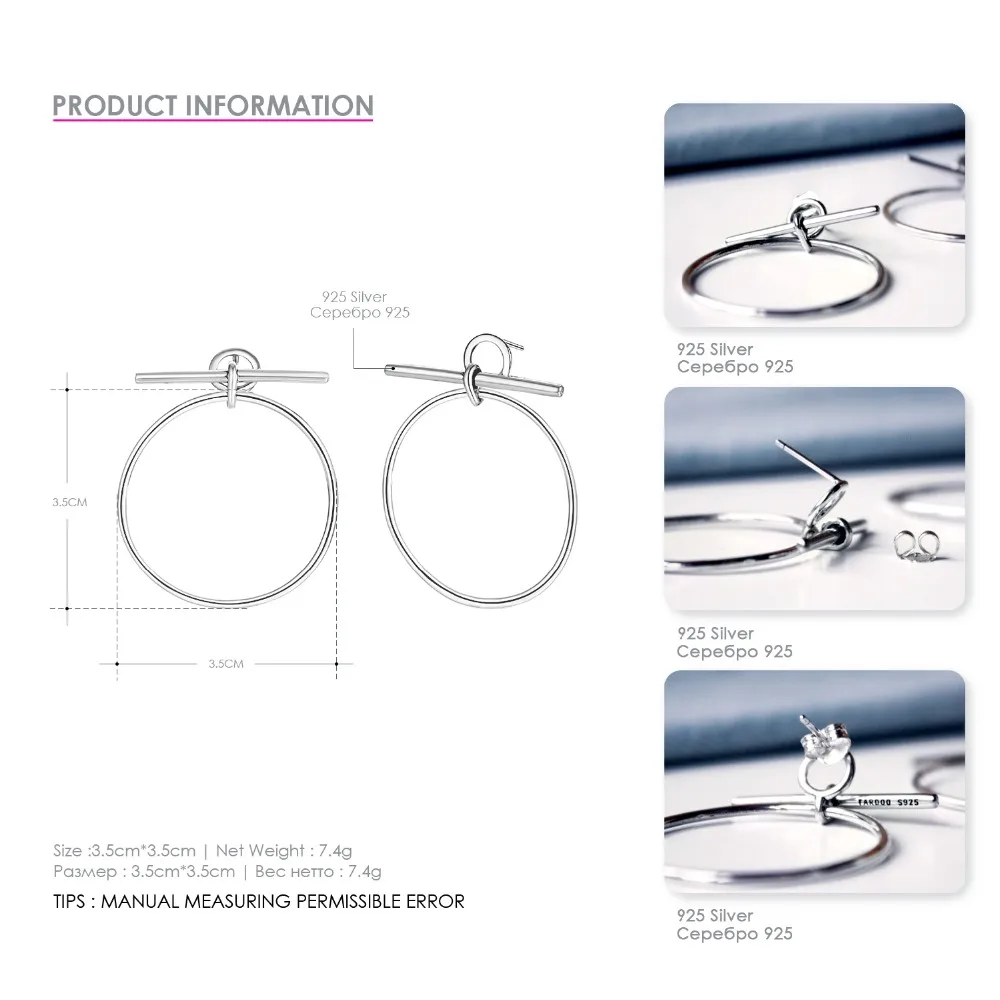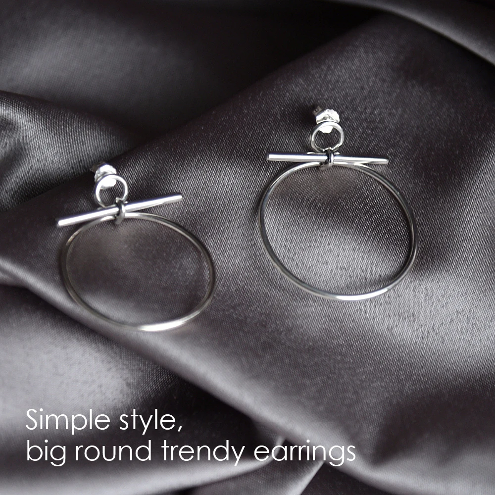 Genuine 925 Sterling Silver Drop Earrings for Women Big Round Design Trendy&Simple Style Costume Jewelry Earrings