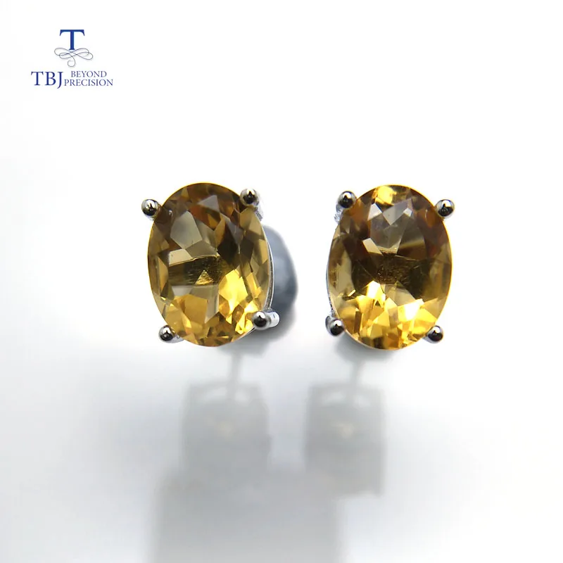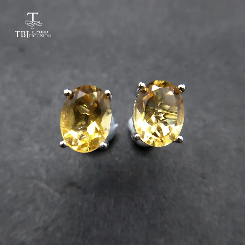 TBJ,3ct classic earring with natural citrine ov6*8 gemstone in 925 sterling silver,elegant & simple earring for women as gift
