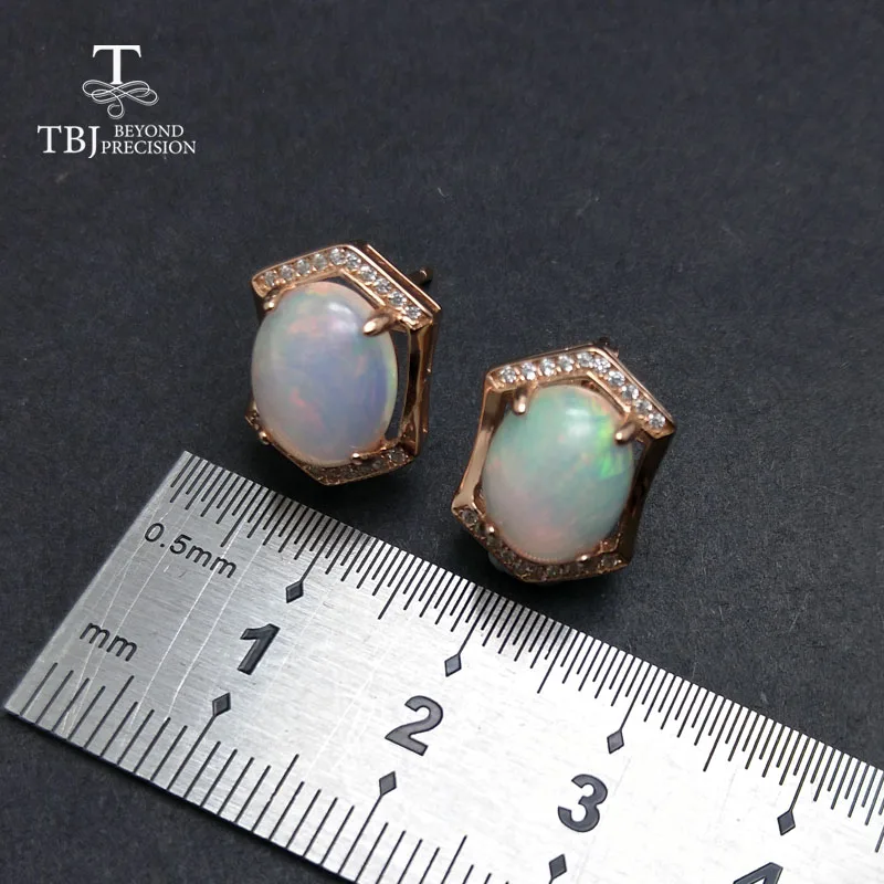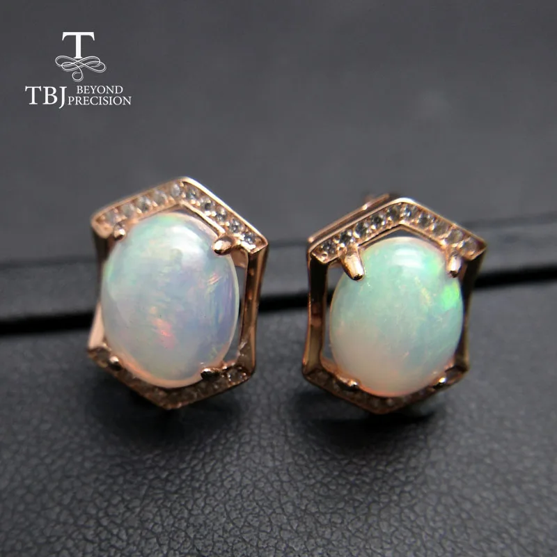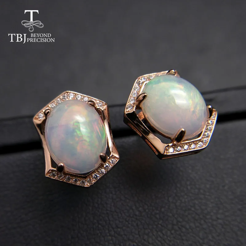 TBJ ,Natural white colorful ehiopian opal oval cut 8*10mm earring studs in 925 sterling silver gemstone jewelry with gift box