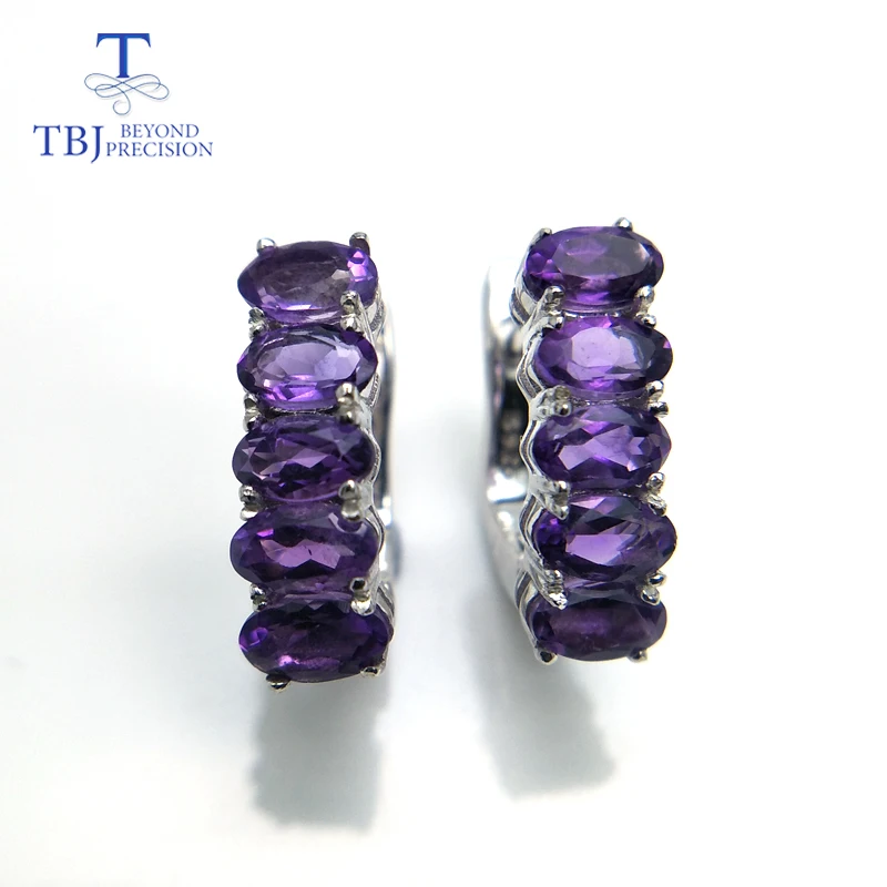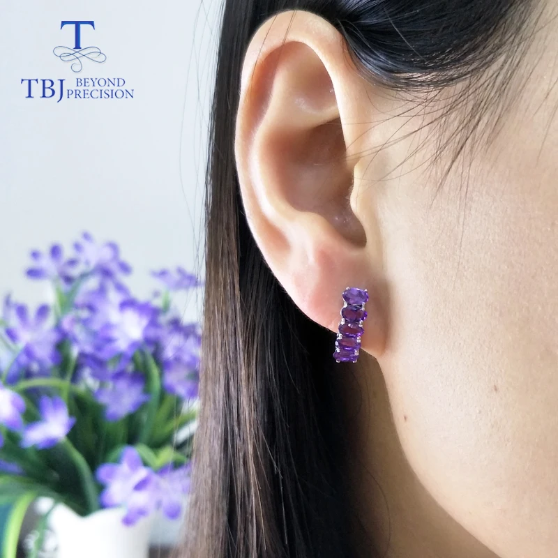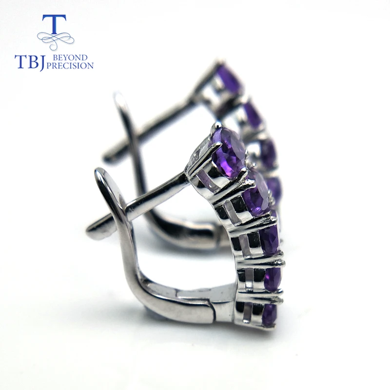 TBJ,Romantic Clasp earring with natural africa amethyst gemstone earring in 925 sterling silver elegant design for women as gift