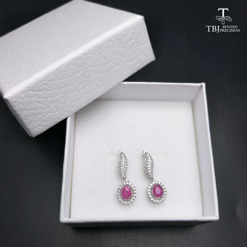 TBJ,two pieces of natural african ruby gemstone New elegant earring in 925 sterling silver for ladies as gift jewelry box