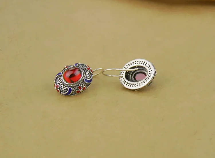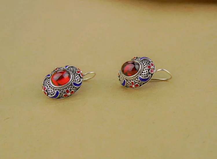 Thailand and the pure manual S925 pure silver Thai silver agate garnet female money eardrop restoring ancient ways