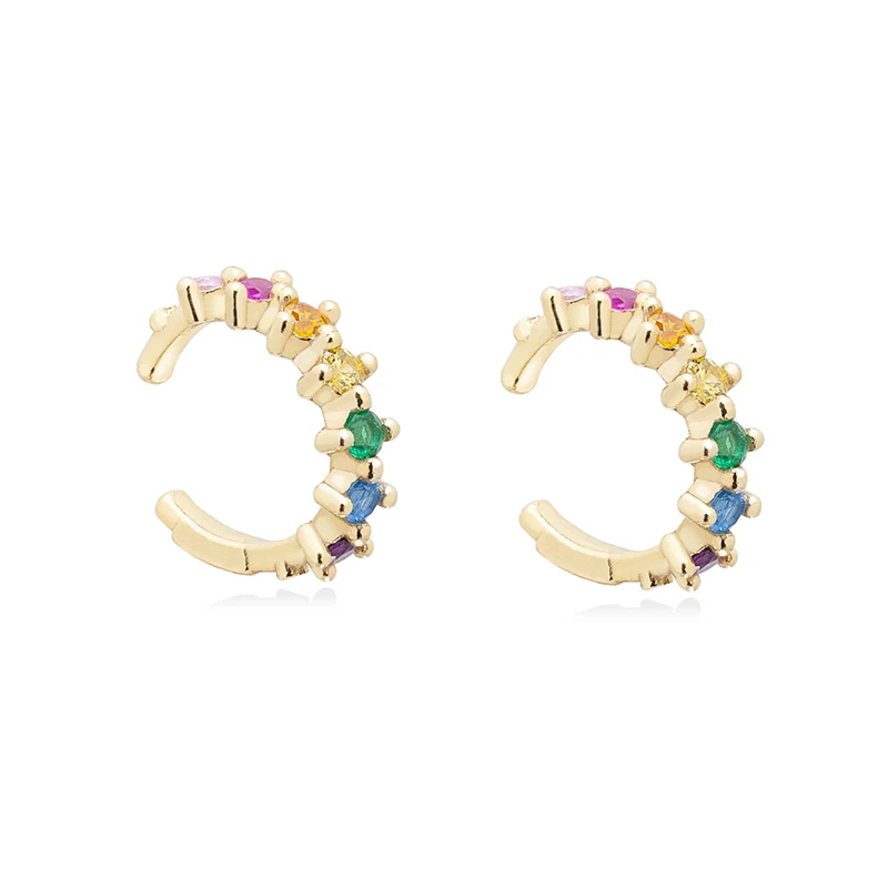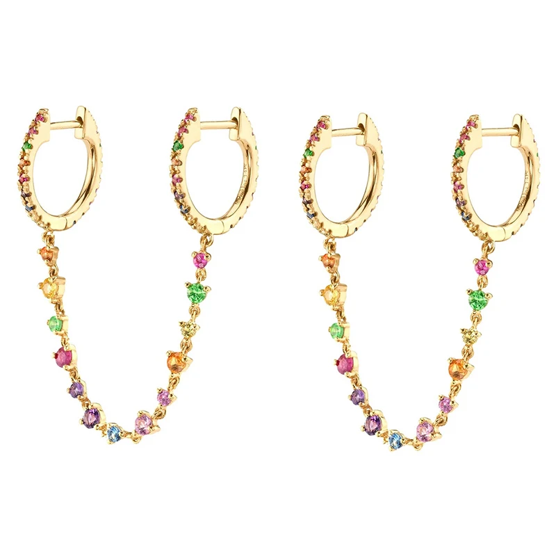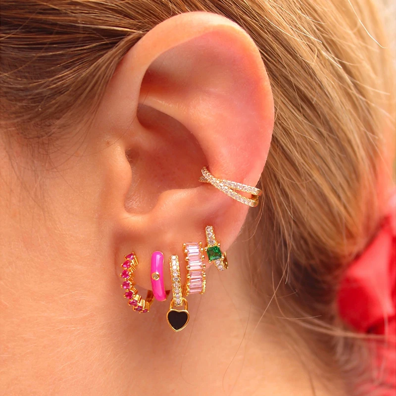 Colored Zircon Ear Stud Earrings for Women Gold Plated Piercing Hoop Drop Chain Dangle Earring Set 2023 Jewelry