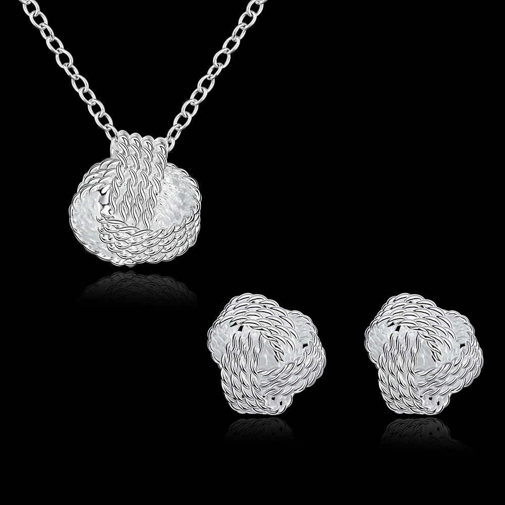 trend 925 Sterling Silver Pretty ball necklace stud earrings for woman Jewelry sets Party wedding accessories gifts
