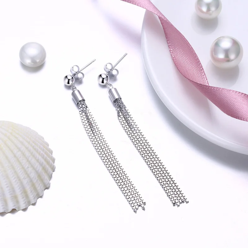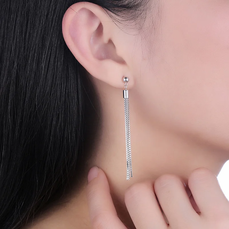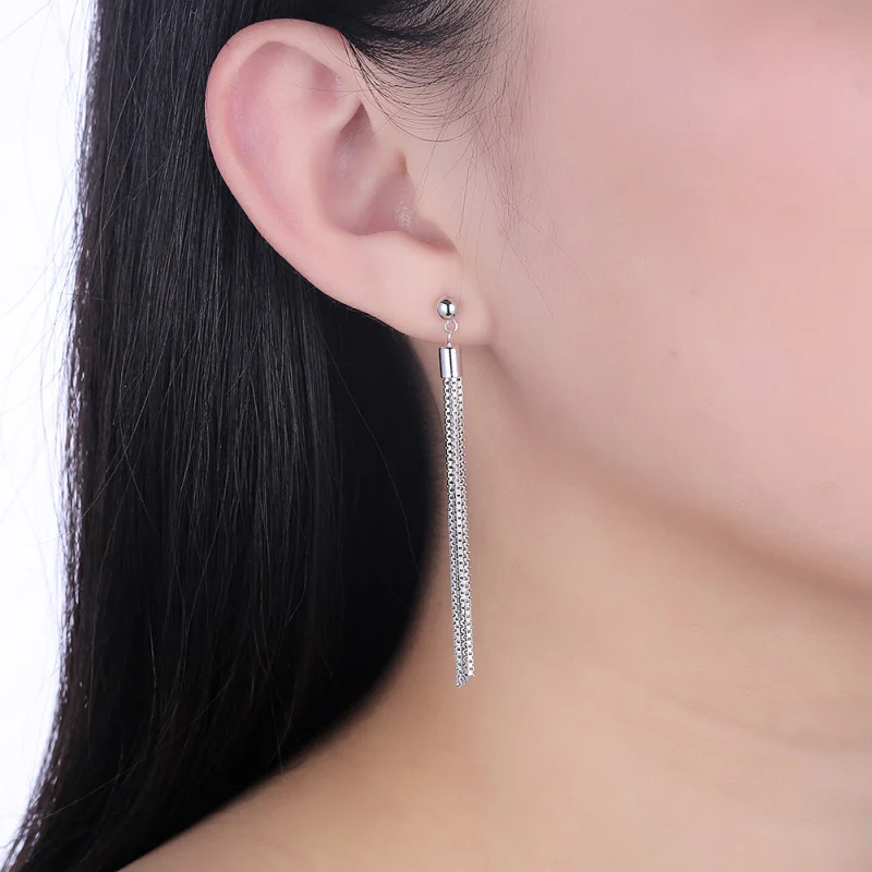 Trendy real 925 sterling silver tassel drop earrings for girl party gift pure silver jewelry 3.5g SE17