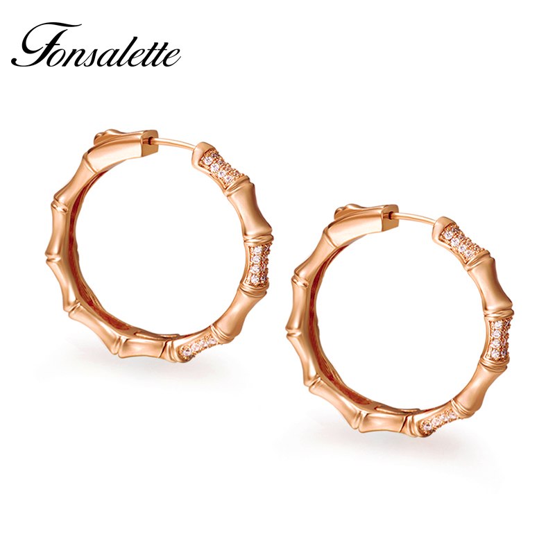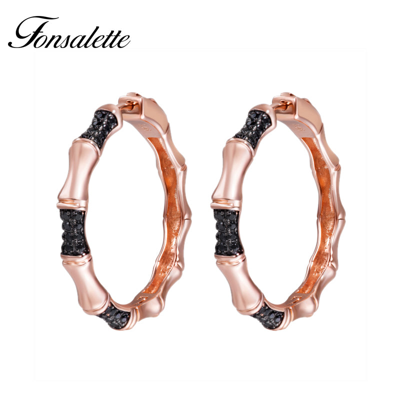 Trendy Woman Hoop earrings 925 Sterling Silver Post Earring Skinny Circle CZ Bamboo Shape ear Female Jewelry Wholesale Gift zk30