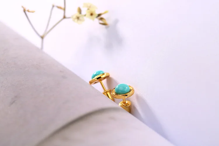 Real 925 Sterling Silver Women Fine Jewelry Nature Turquoise Beads Stud Earrings Handmade Ethnic Brincos Vintage Bijoux