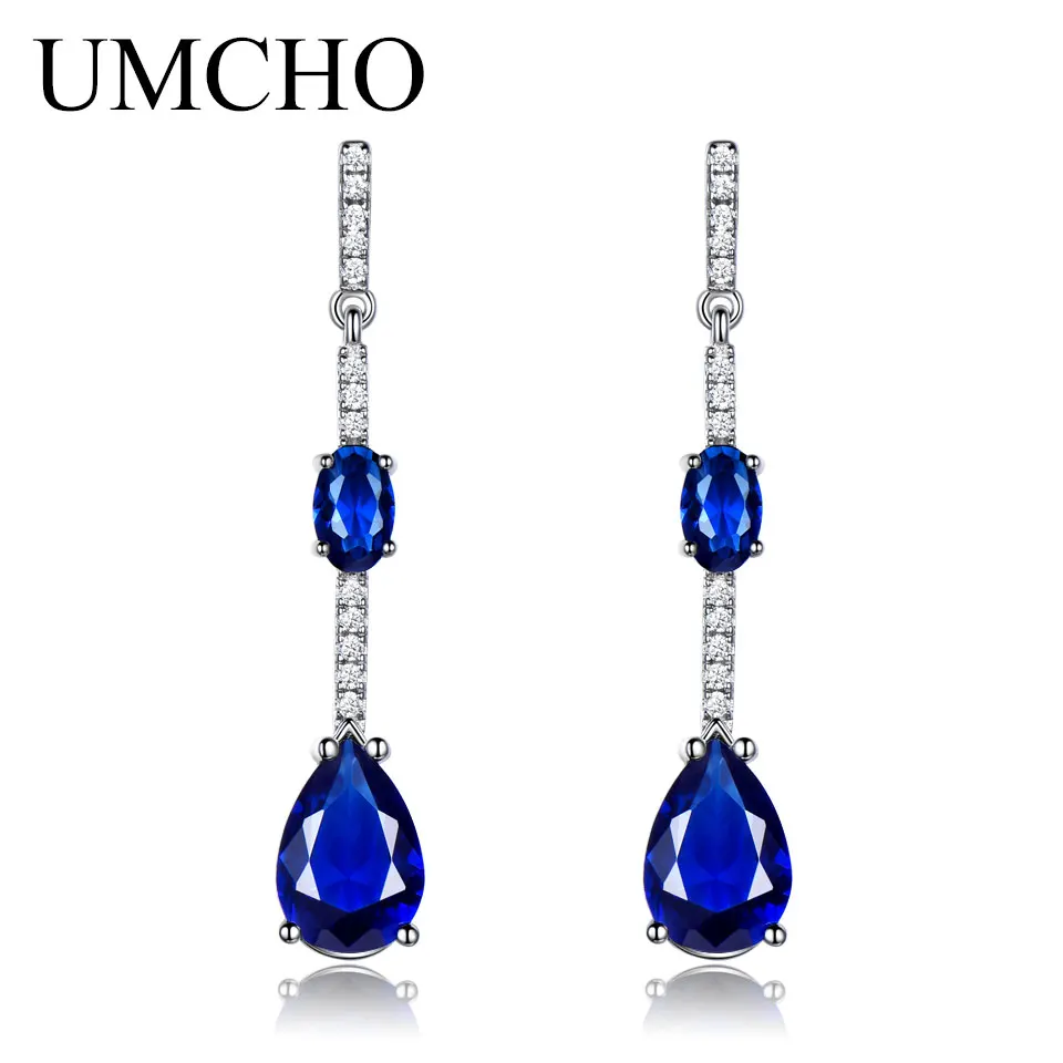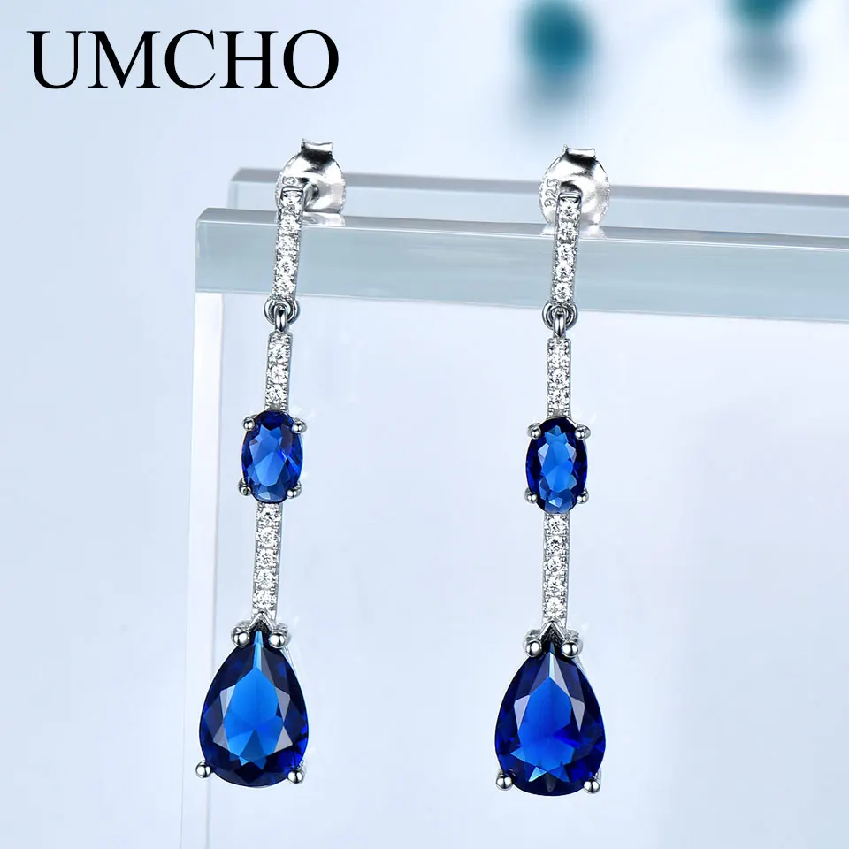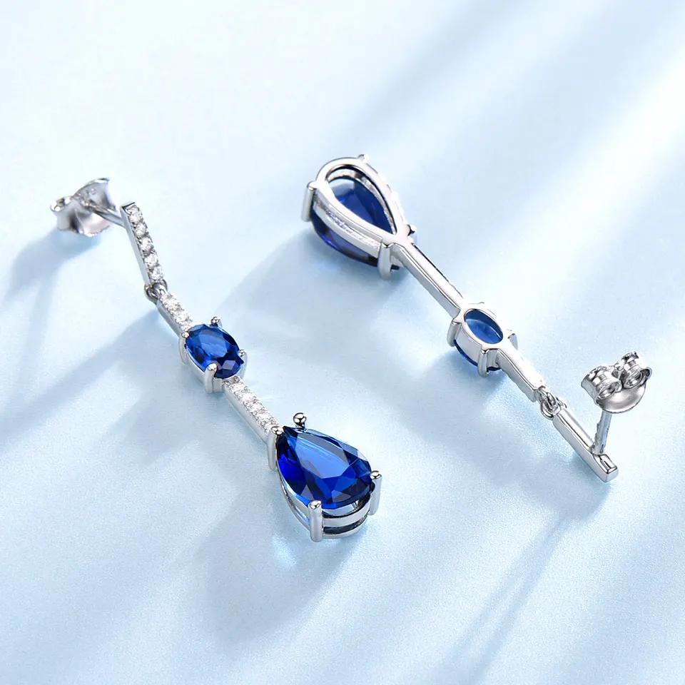 925 Sterling Silver Earring Geometric Created Nano Blue Sapphire Drop Earrings For Women Birthd Gift Charms Fine Jewelry