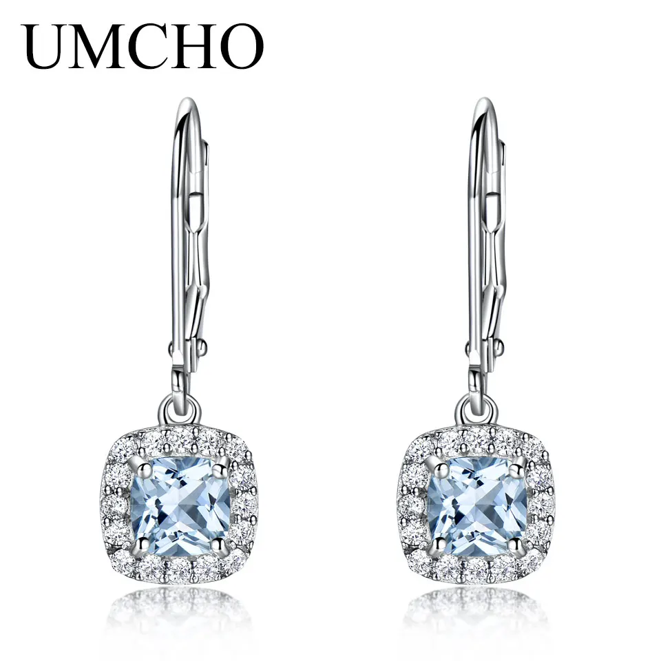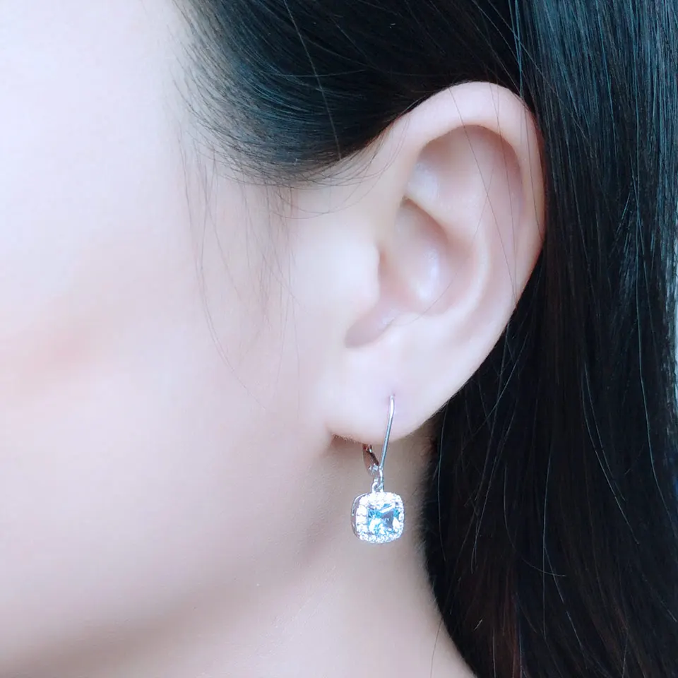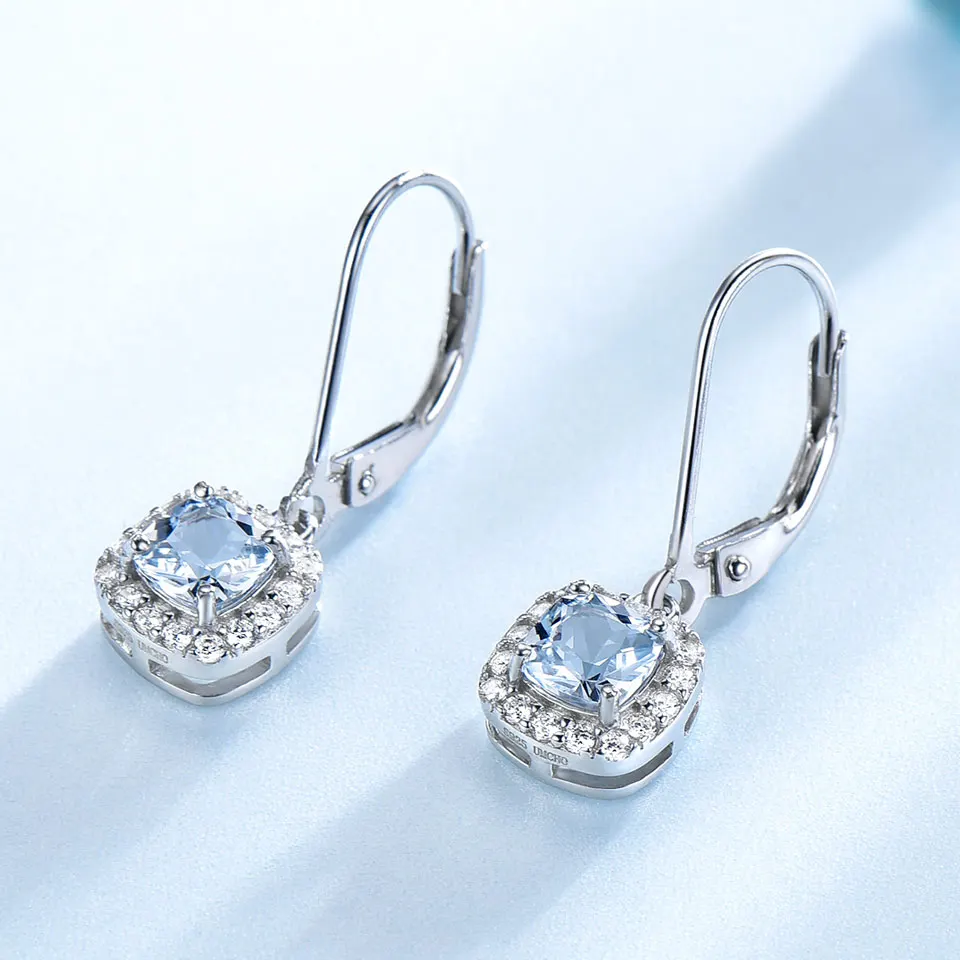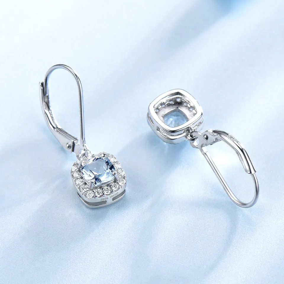 Sky Blue Topaz Earrings Gemstone Aquamarine Clip Earrings Real 100% 925 Silver Jewelry For Women Elegant Gift Fine Jewelry