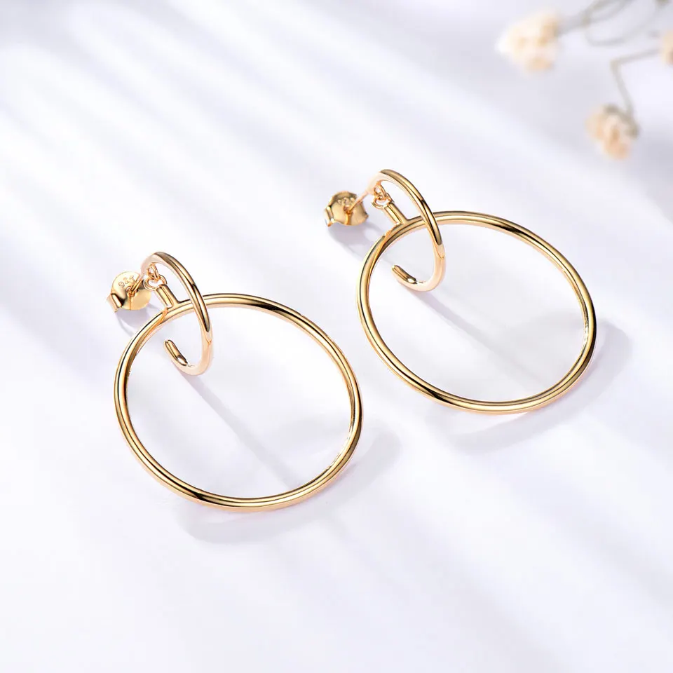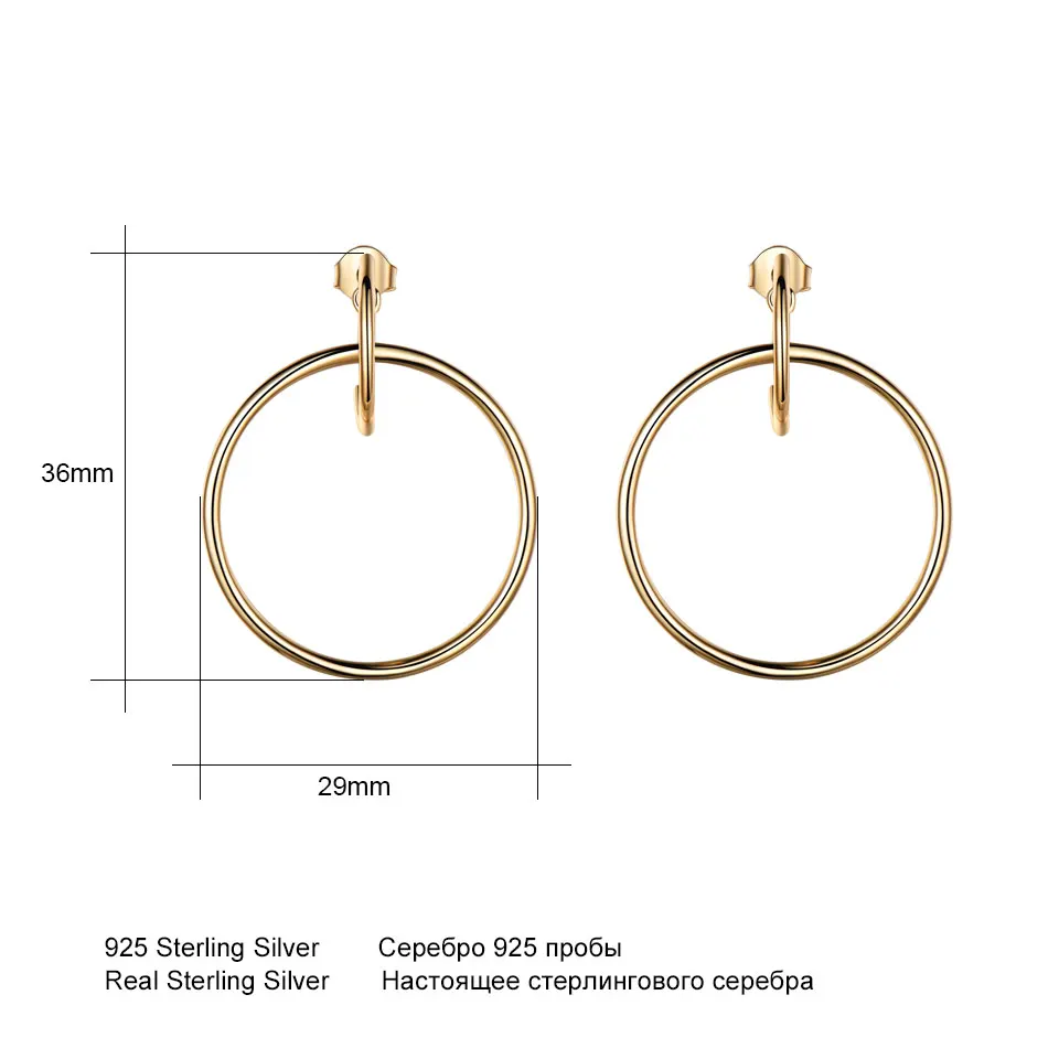 Solid Genuine 925 Sterling Silver Earrings Simple Fashion Hoop Earrings Party For Women Birthd Gifts Fine Jewelry Yellow