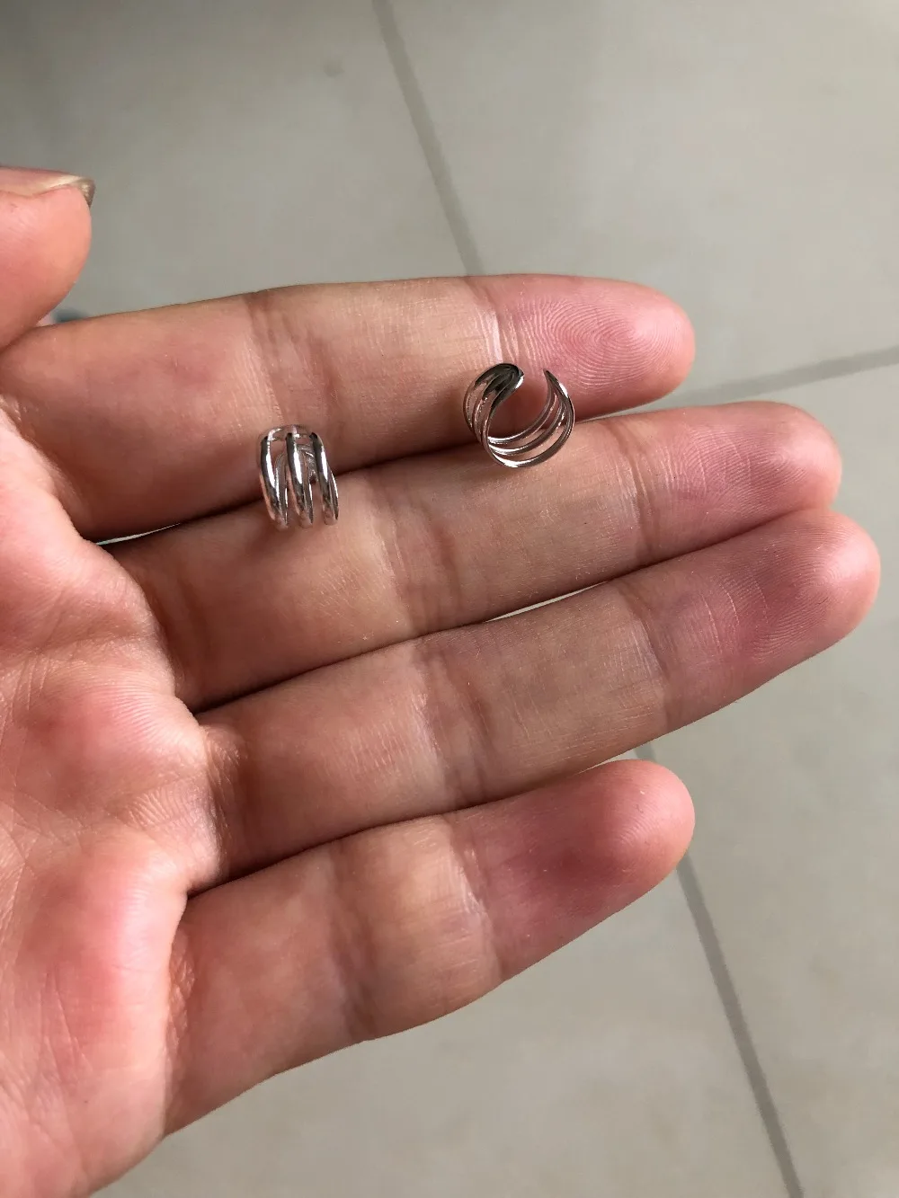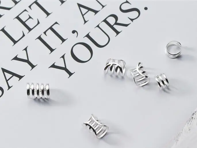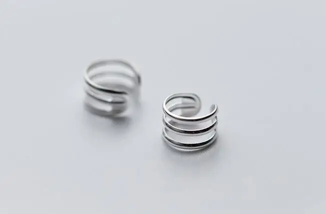 UNISEX TINNY Real. 925 Sterling Silver Fine jewelry OPEN Hollow filve-layers/FOUR-rows/3ROWS Clip Earrings (No pierced)GTLE2248