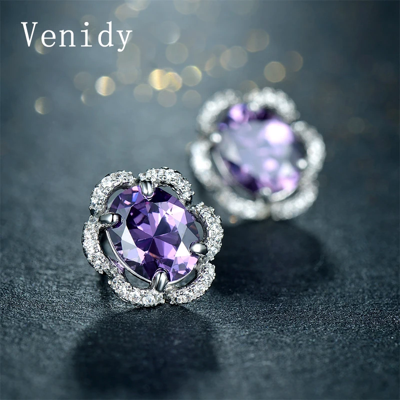 Water Drop Natural Amethyst Stud Earrings 925 Sterling Silver Flower Jewelry for Women Heart Sterling-Silver-Jewelry