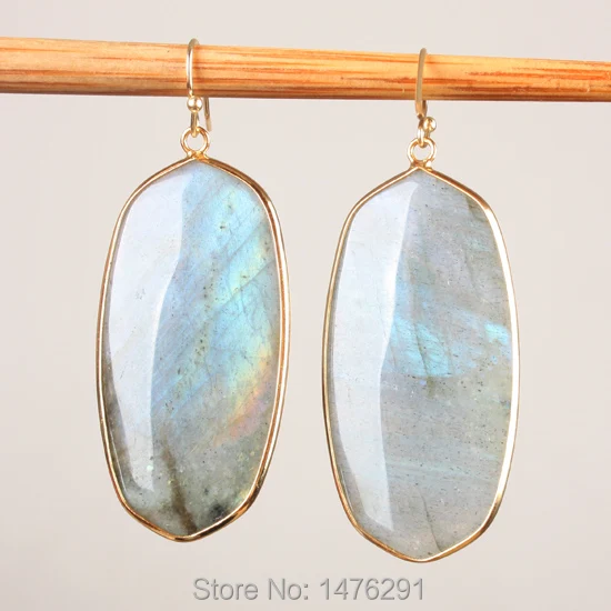 Vogue Lapis lazuli Abalone Shell Rose Pink Quartz Onyx Labradorite Hook Dangle Earrings 1Pair