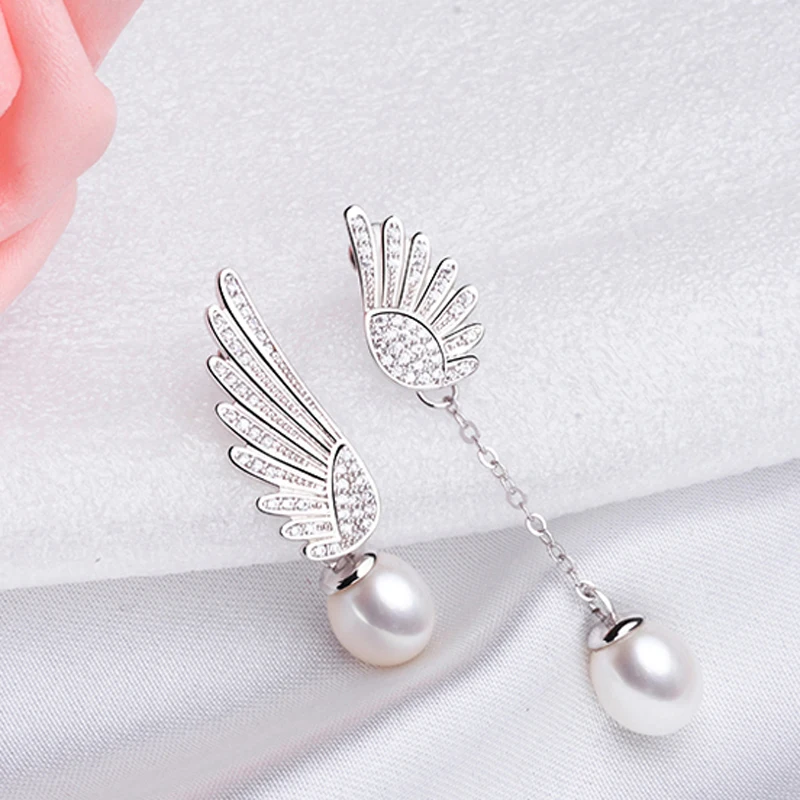 Wedding long white natural pearl stud earrings for women,925 silver pearl jewelry earrings mother pearl jewelry