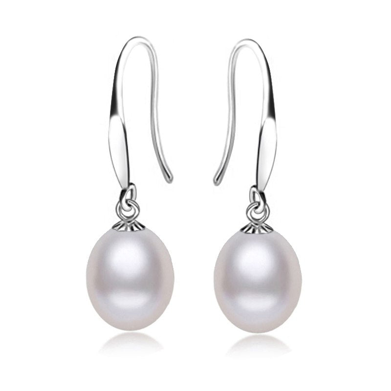 Wedding Real Drop Earrings for Women Bridal Gift,Trendy White Natural Pearl Earrings Silver Jewelry