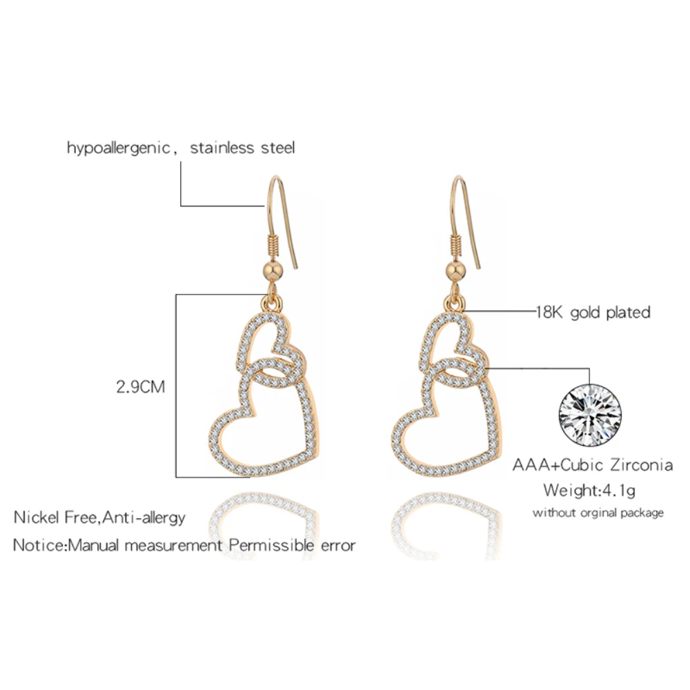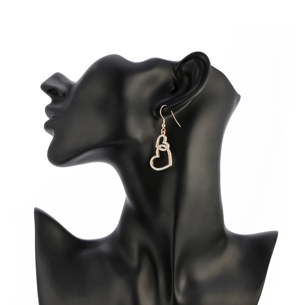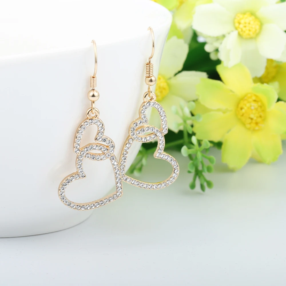 Women's Piercing Dangle Earrings Rhinestone Double Heart Drop Earings Female Party Gift Accessories Korean Jewelry 2022
