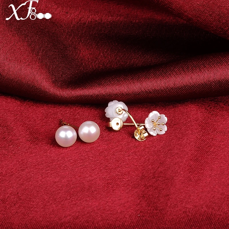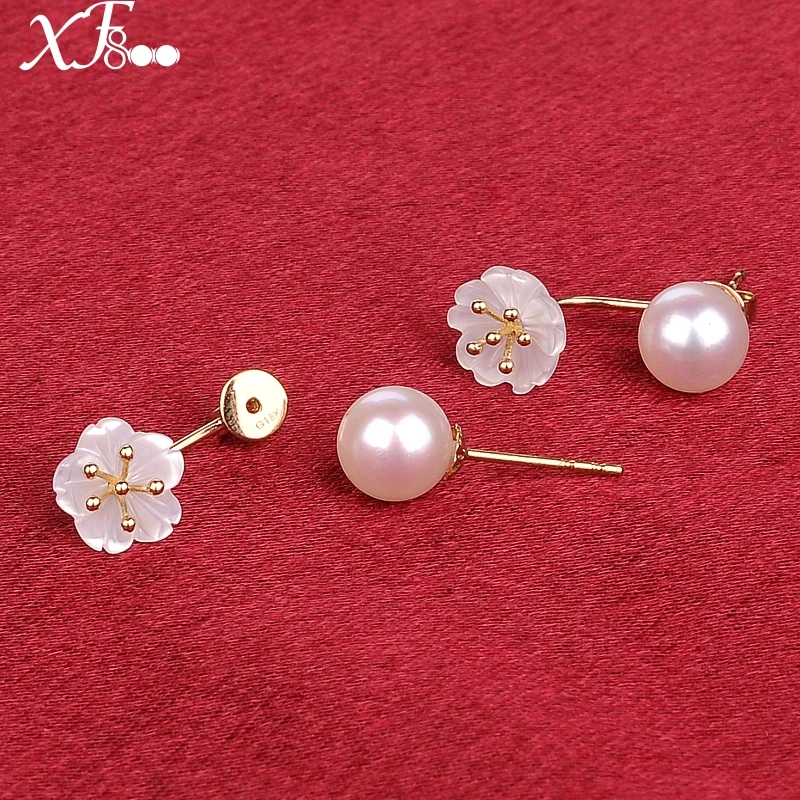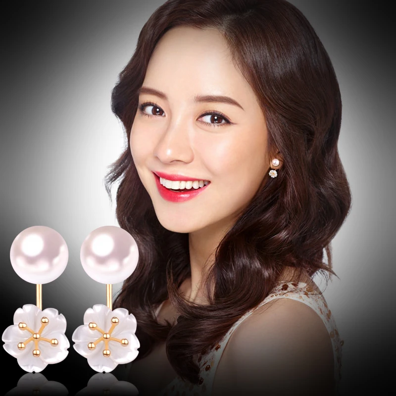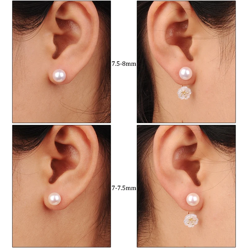 Double Earrings 18K Gold Pure Pearl Fashion Stude Earrings Wedding Party Gift For Women Girl Shellfish E129