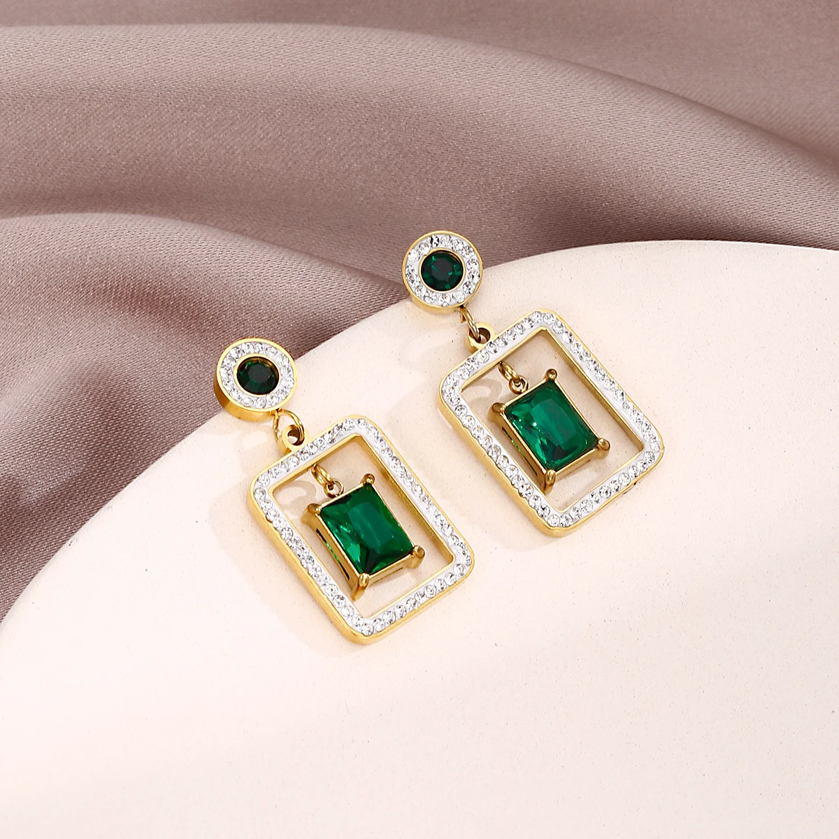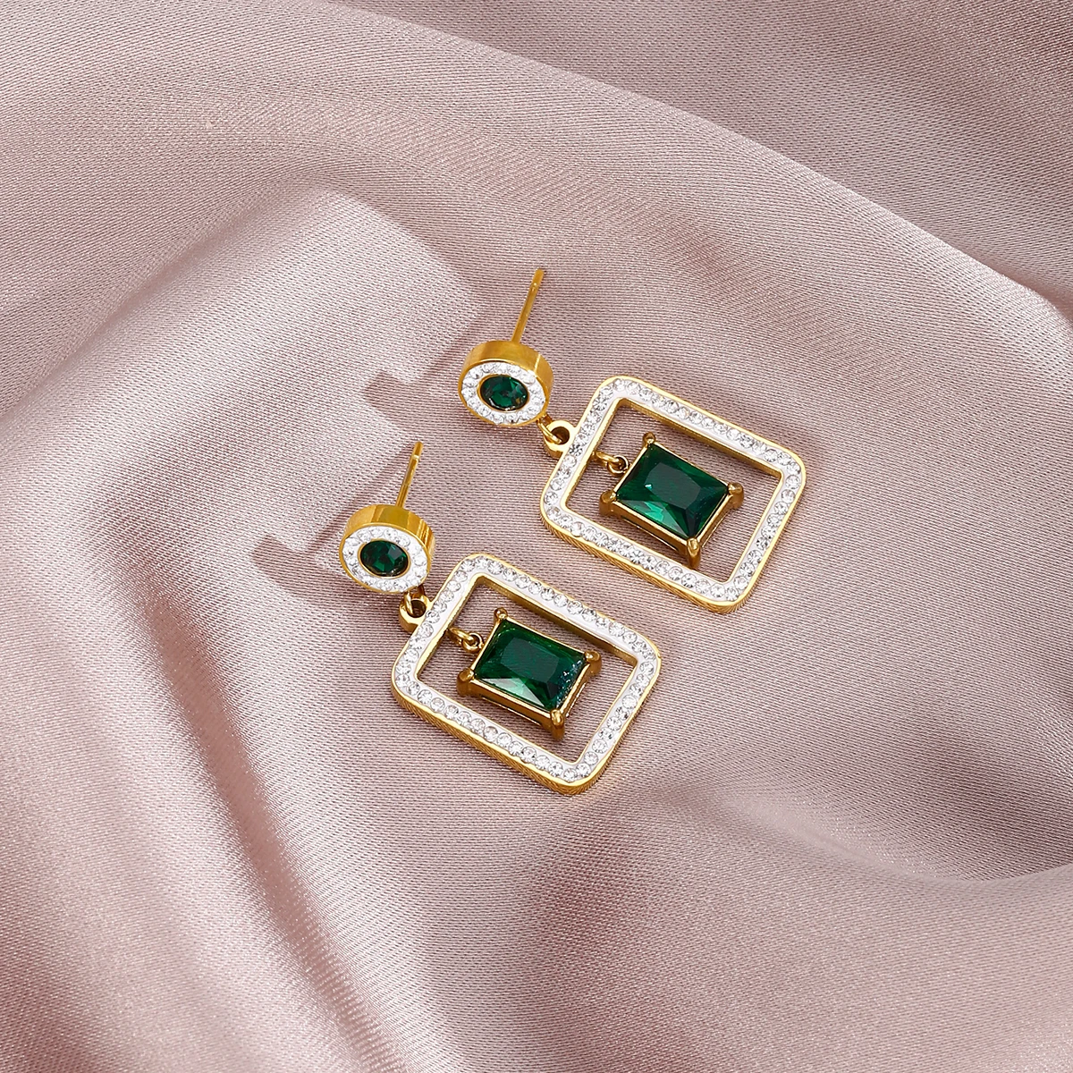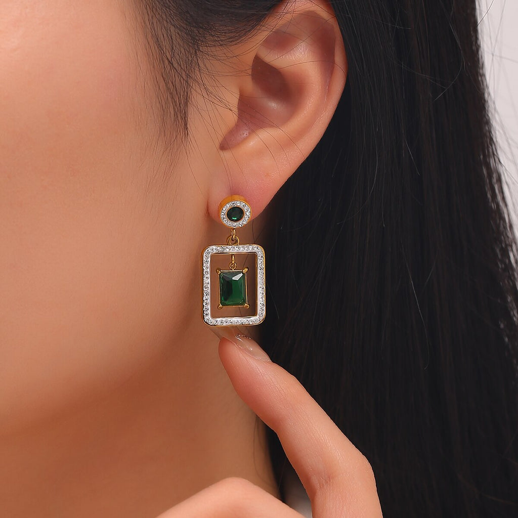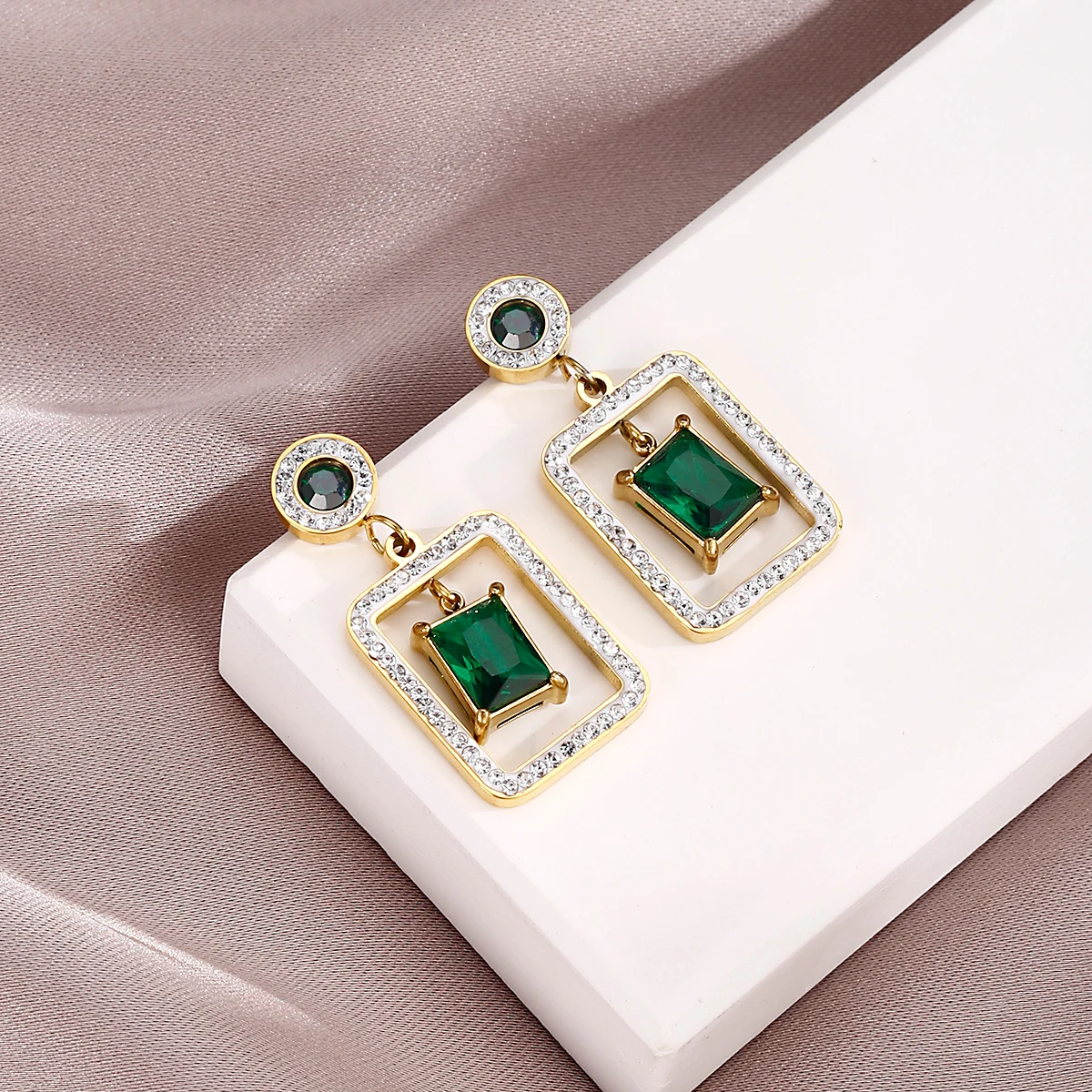 XINYIXIN 316L Stainless Steel Square Green Zircon Drop Earrings For Women Girls Ear Jewelry Party Gifts TrendСерьги