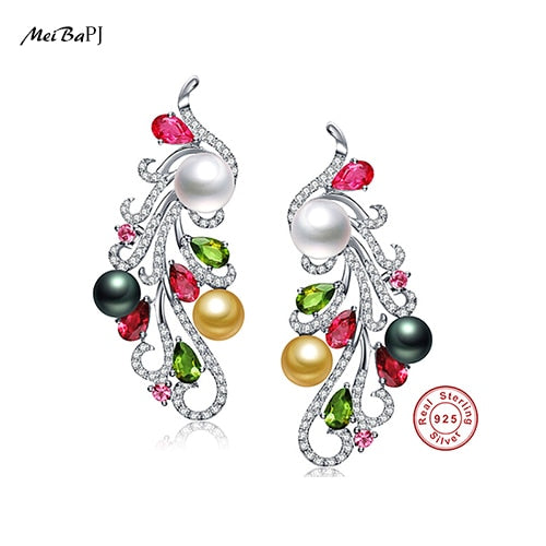 925 Silver Colourful Pearl Stud Earring Natural Pearl Phoenix Earrings Pearls Jewelry For Women