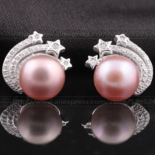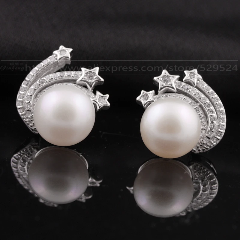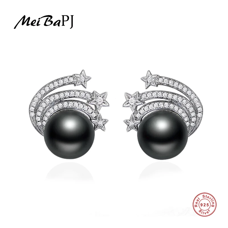 [MeiBaPJ] 9-10mm Natural Pearl Earrings for Women Stud Earrings 925 Solid Silver Stars Fashion Earrings Fine Jewelry
