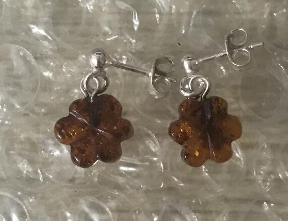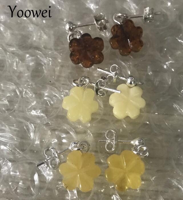 Plum Flower Amber Earrings Baltic Genuine Natural Amber Jewelry Gift pendientes ambar Folk Style Unique Earring Wholesale