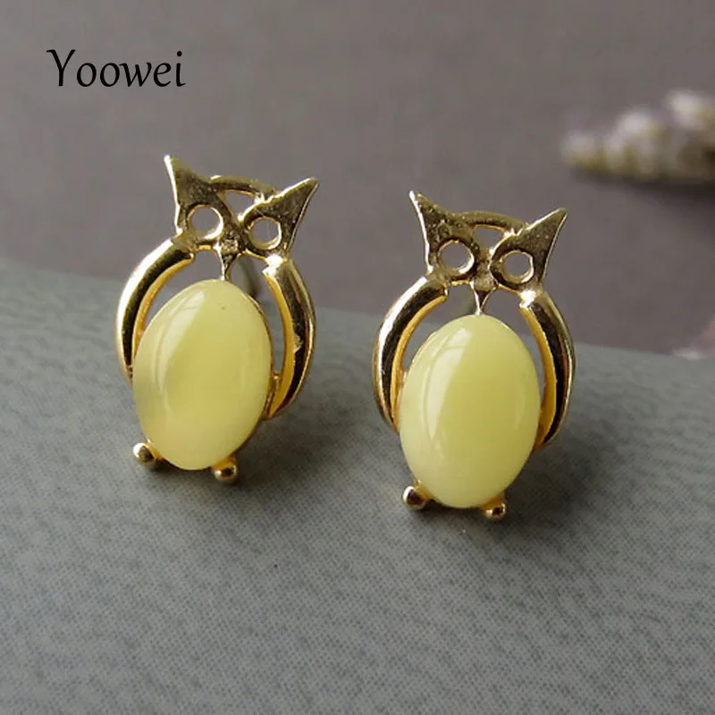 Wholesale Owl Amber Earrings for Girl 100% Natural Butterscotch Beads Stud Earring Baltic Amber Jewelry Pendientes ambar