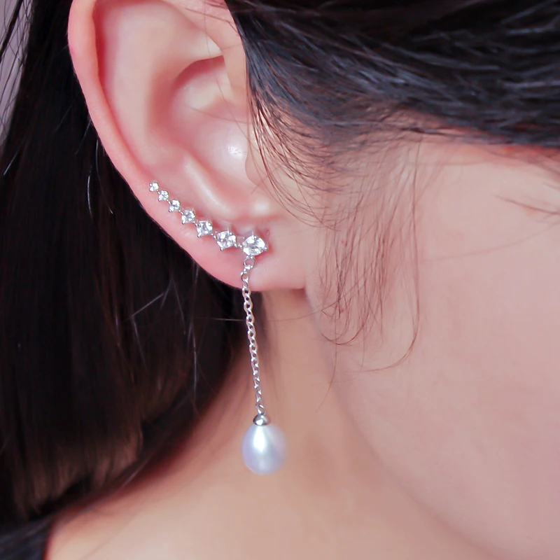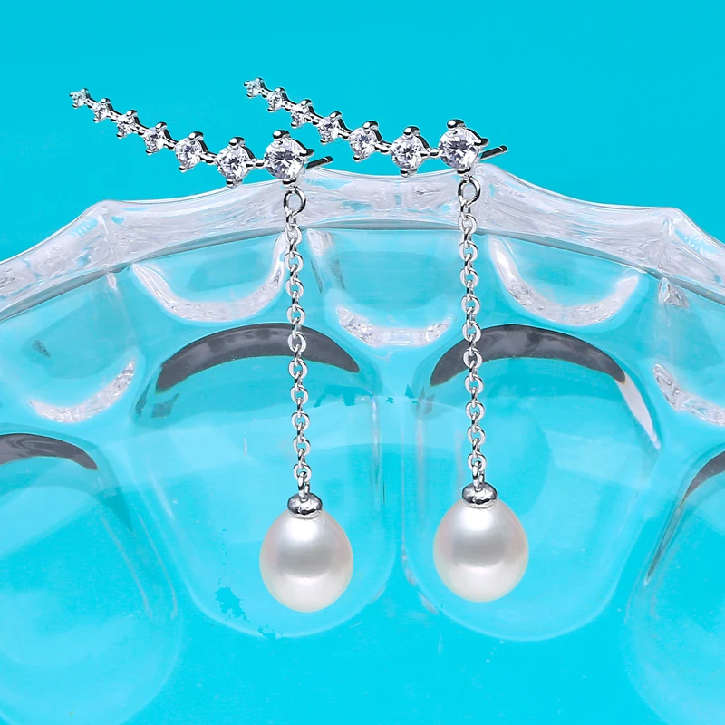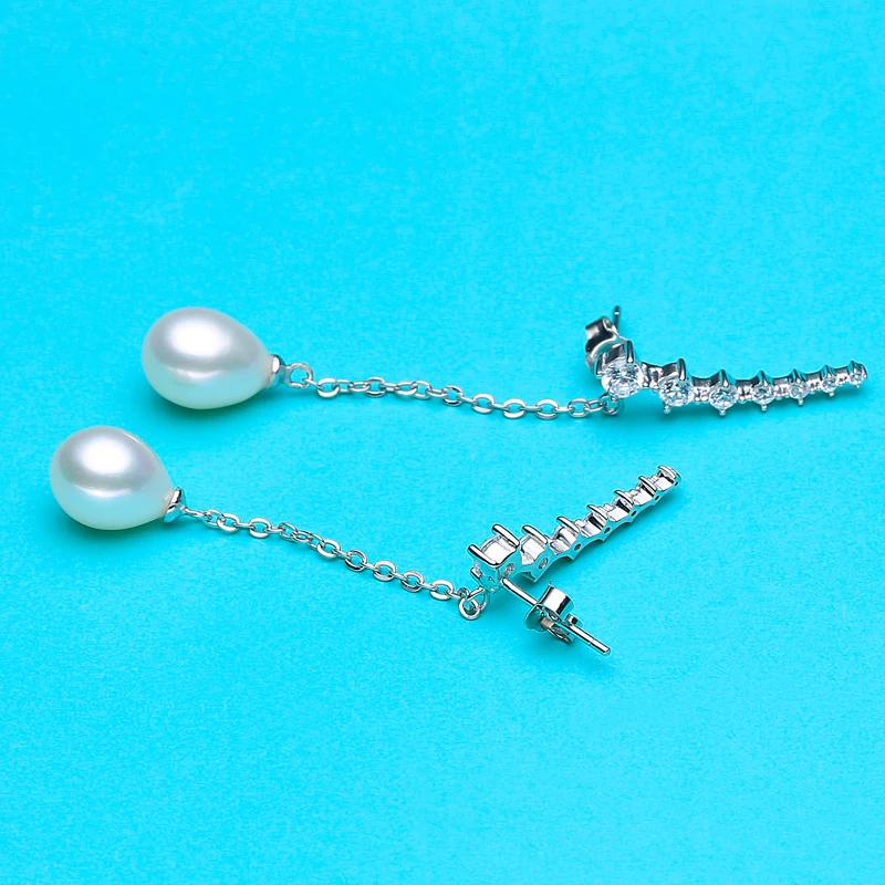 YouNoble real natural pearl clip-on earrings,fancy 925 sterling silver hanging earrings birthd for women white pink