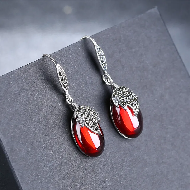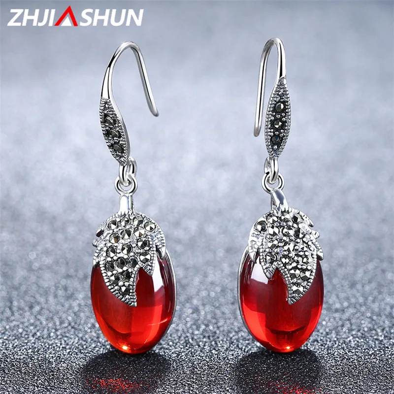 Leaves Gemstone Garnet Earrings for Women 925 Sterling Silver Fine Jewelry Anniversary Birthd Gift