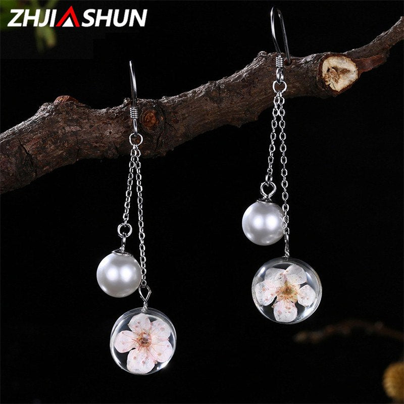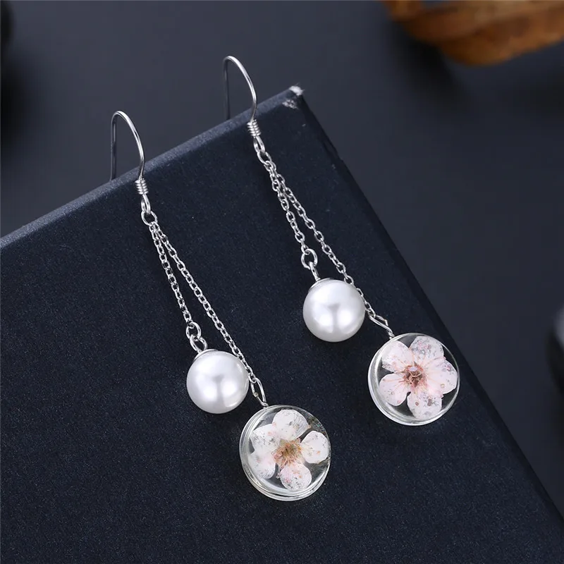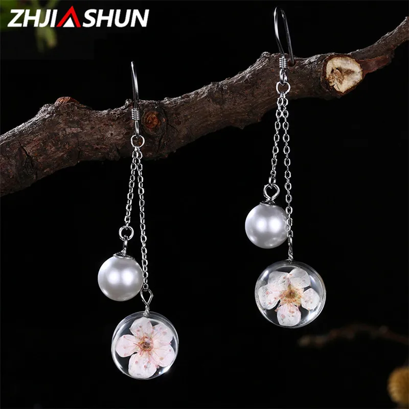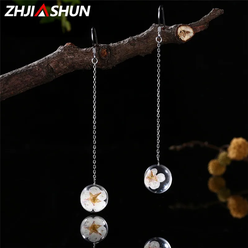 Personality 925 Sterling Silver Jewelry Flower Earrings for Women Ladies Romantic Long Drop Earrings Christmas Gifts