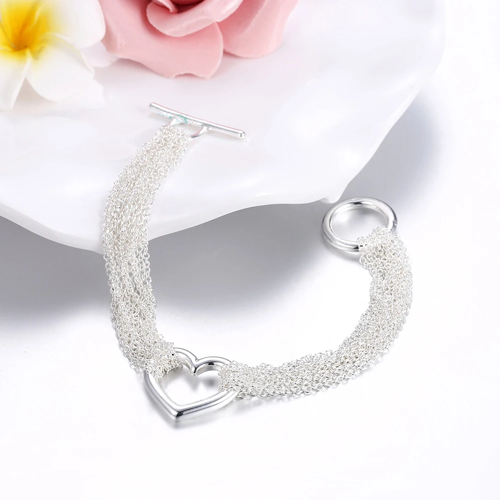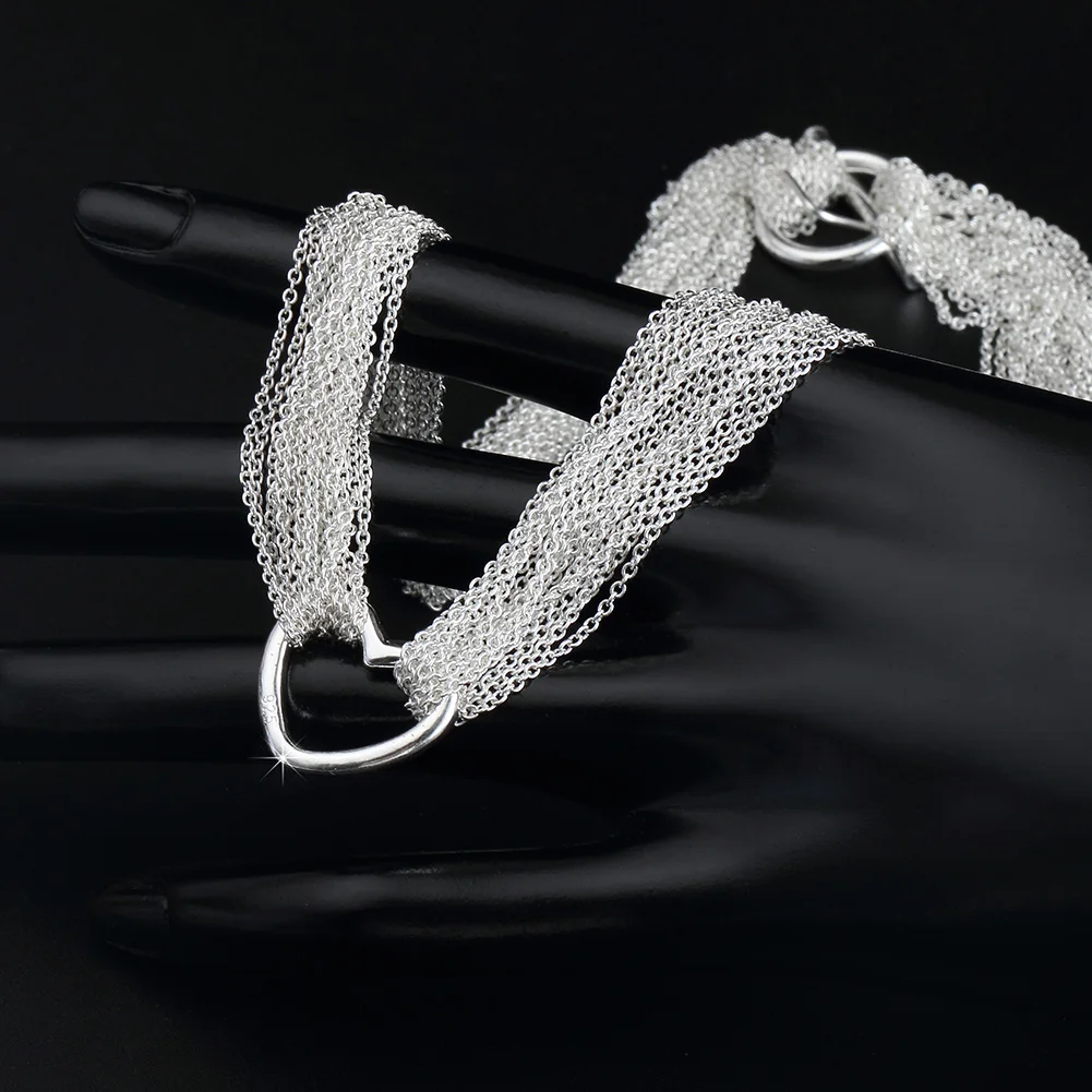 925 sterling Silver romantic charms Tassel Heart bracelets neckalce jewelry sets for women Party wedding gifts