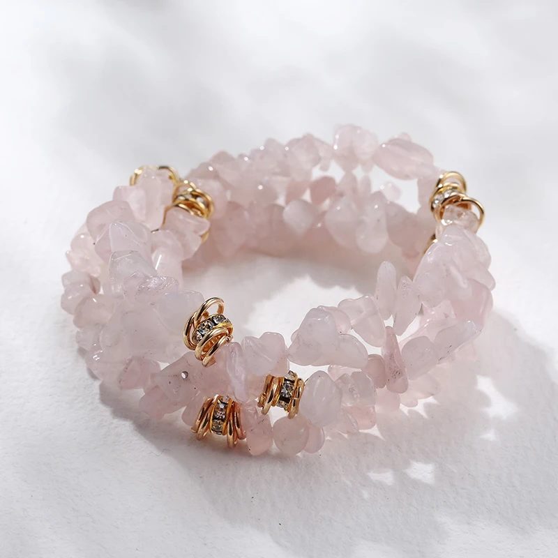 Bojiu Wrapped Bracelets Natural Turq. Howlite Tiger Eye Crystal Chips Stones with Crystal Stone Spacer Relax Bracelets BCSET