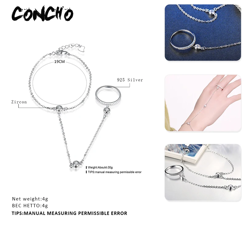 Jewelry 925 Sterling Silver Geometric Shape Set Zircon Bracelet For Women Design Exaggeration Jewellery 2020 Hot Sale
