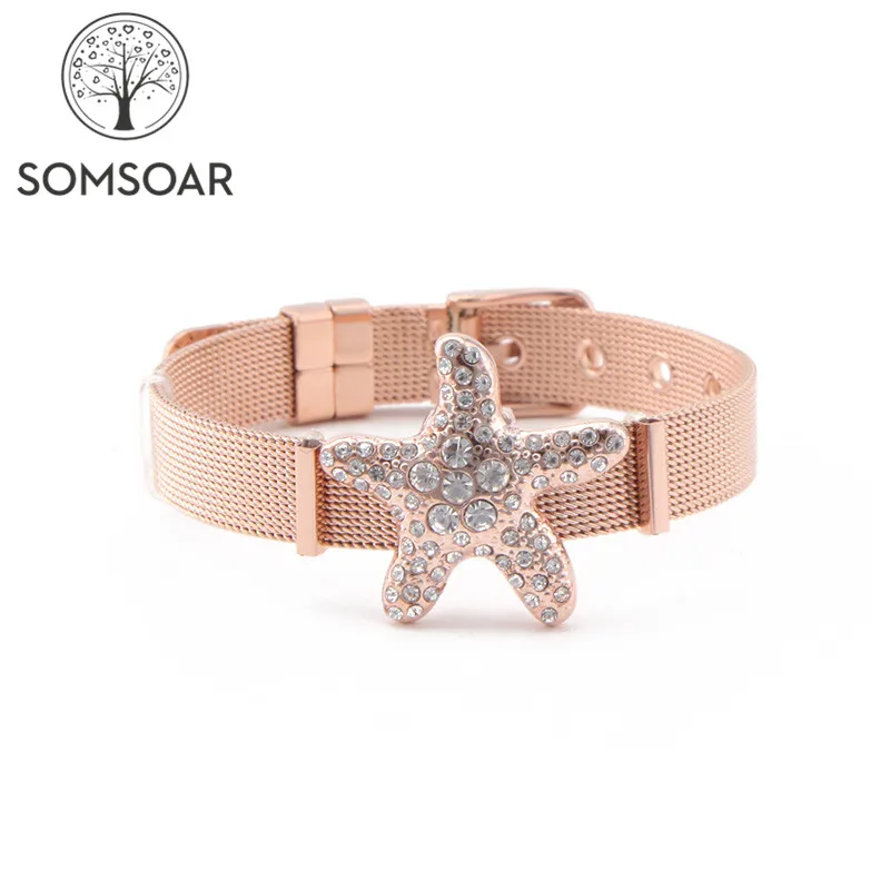 Dropshipping Jewelry Rose Gold Starfish Mesh Bracelet Set with free intercepters Stainless steel Bangle for Beach Girls