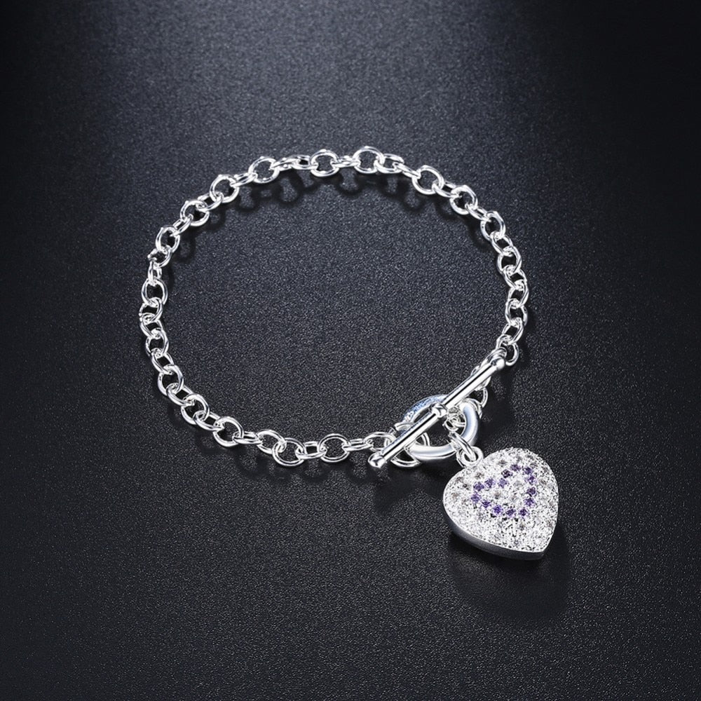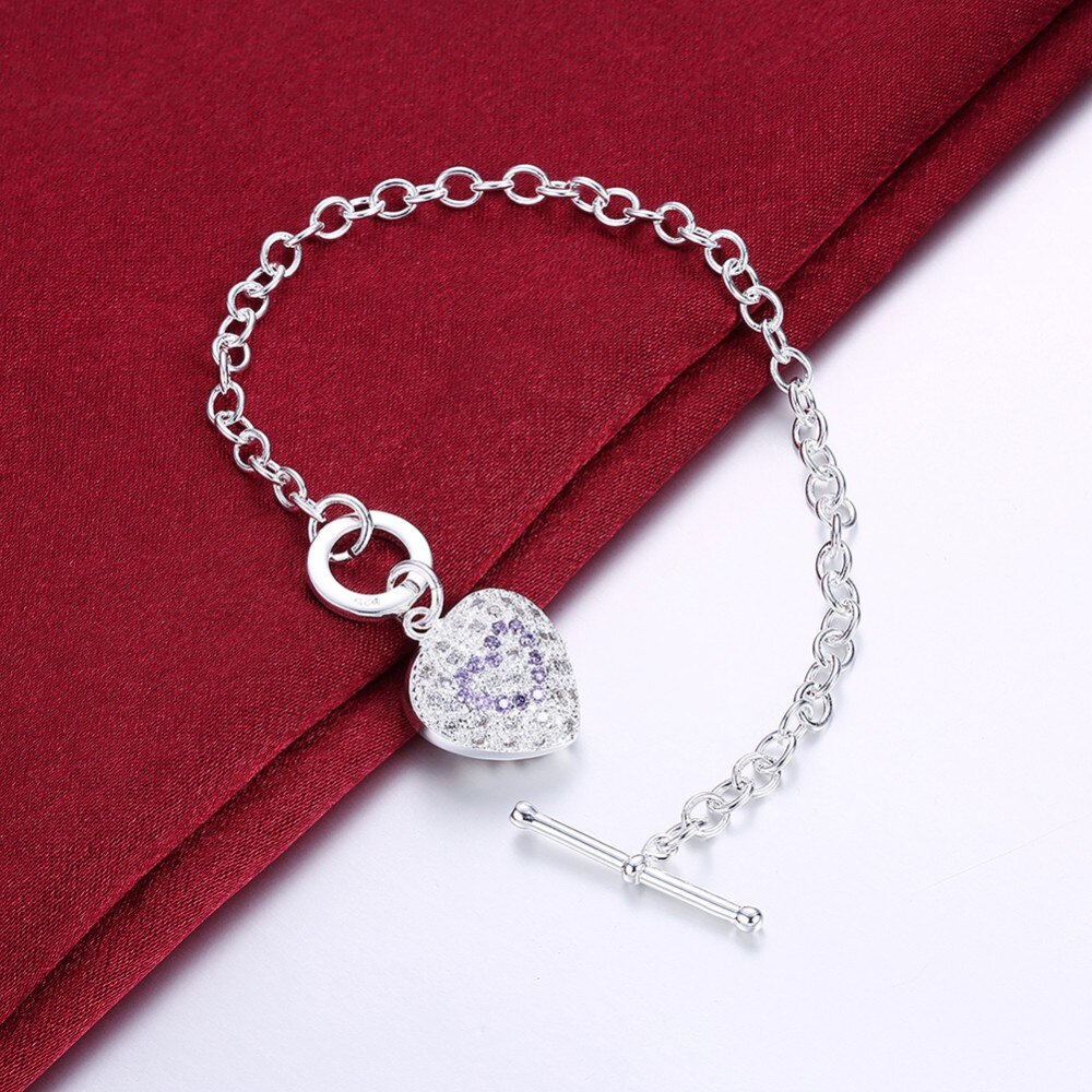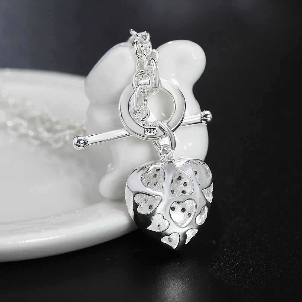 Fine trend 925 sterling Silver romantic heart crystal pendant necklace bracelets Jewelry sets for women Noble Party gift