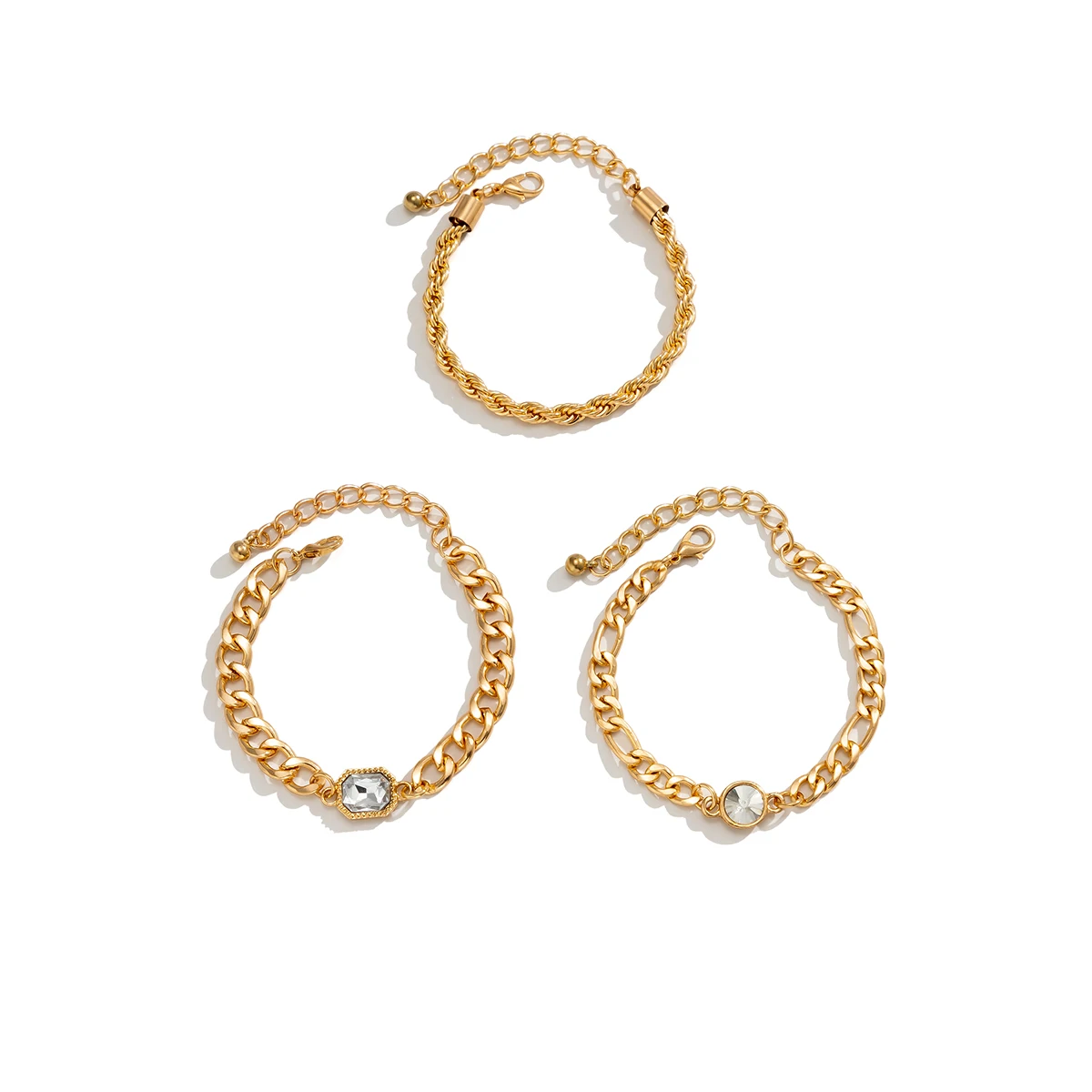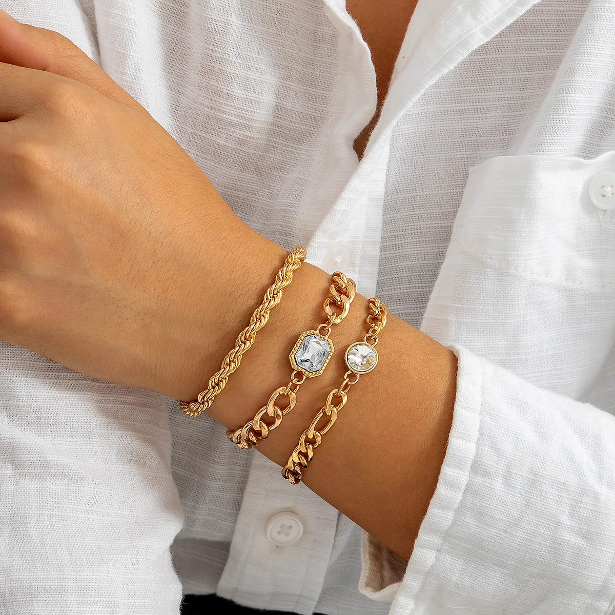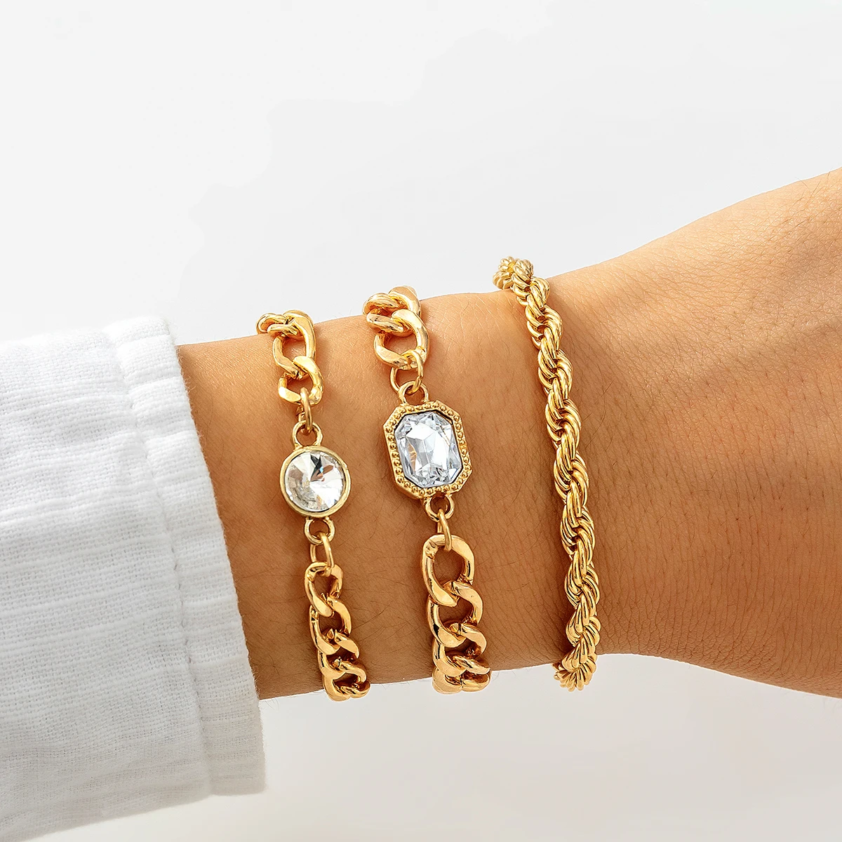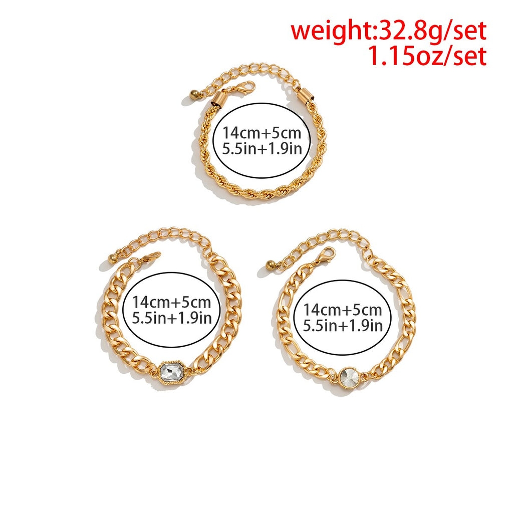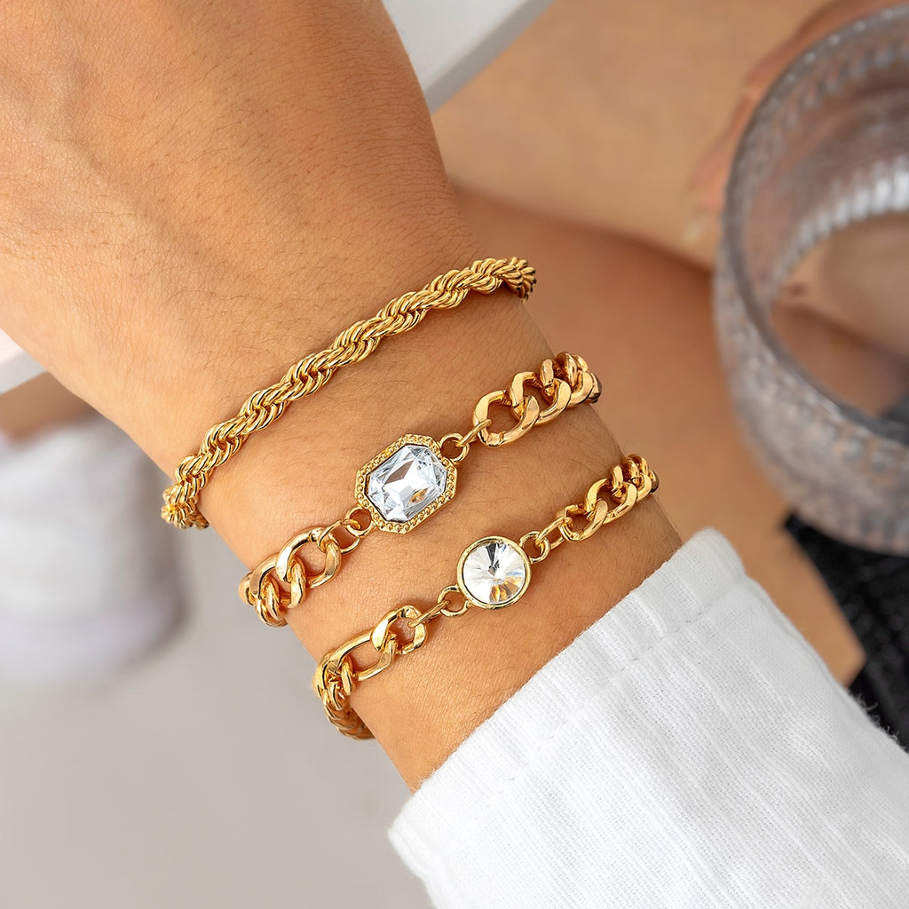 IngeSight.Z 3Pcs/Set Miami Cuban Thick Bracelet With Rhinestone for Women Men Steampunk Hip Hop Twisted Rope Chain Jewelry Gift