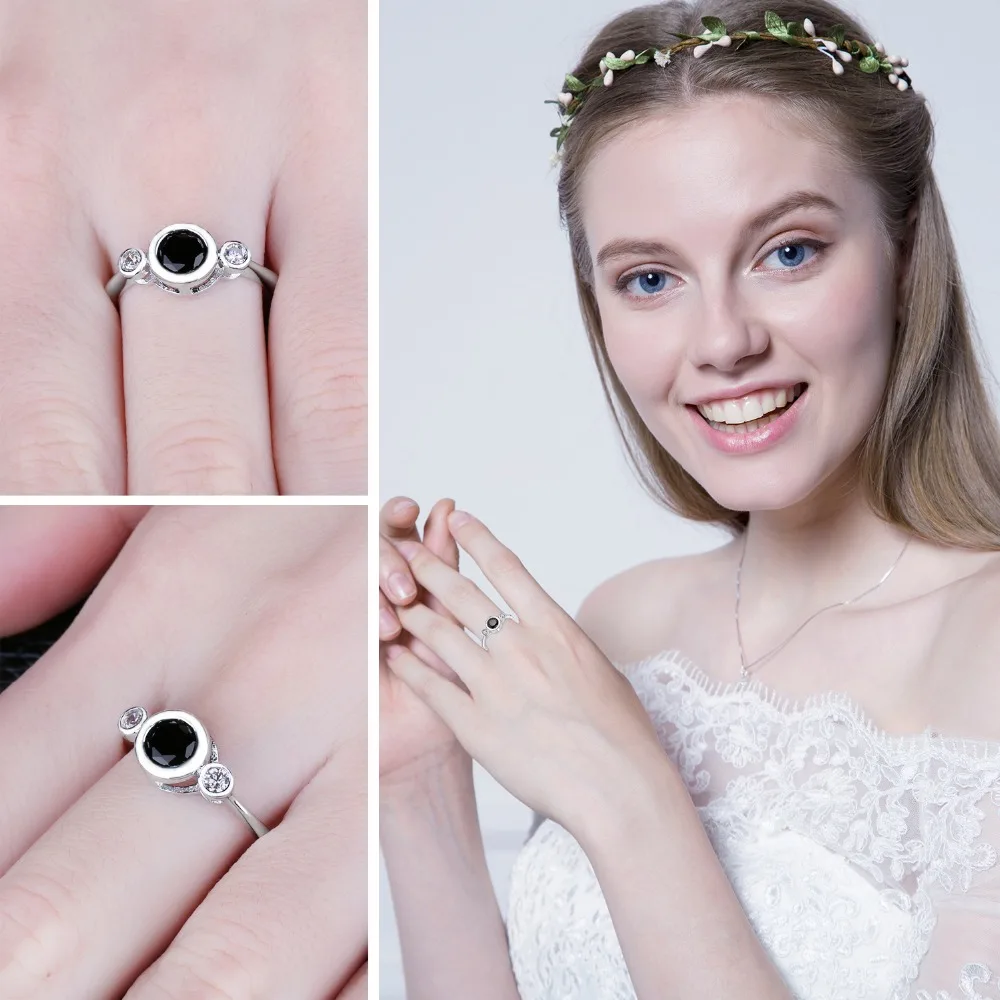 Succinct 1.3ct Green Created Black Spinel Bezel Setting 3 Stone Ring 925 Sterling Silver Simple Fashion Women Ring