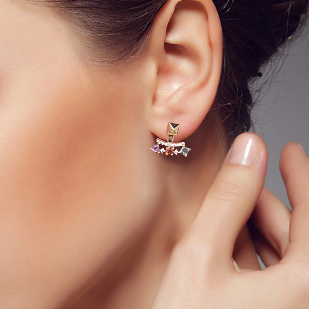 Pyramid 0.7ct 3mm Natural Amethyst Garnet Topaz 925 Sterling Silver Jewelry Jewelry Set V013-1