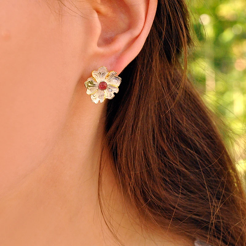 Real 925 Sterling Silver Natural Tourmaline Handmade Designer Fine Jewelry Peony Flower Jewelry Set for Women
