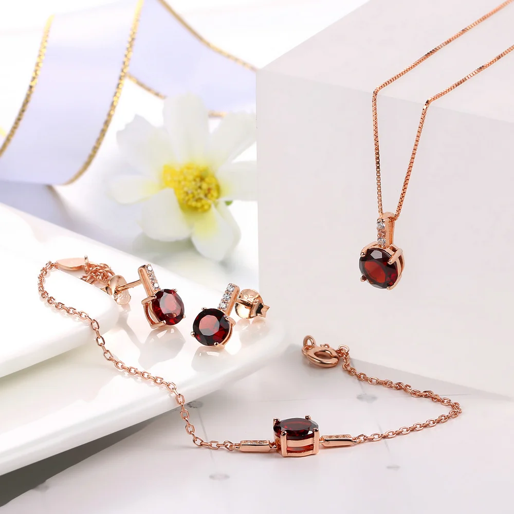 Natural Red Garnet Gemstone Classic 3pcs Jewelry Sets 100% 925 Sterling Silver For Women Party Fine Jewelry V014EHN