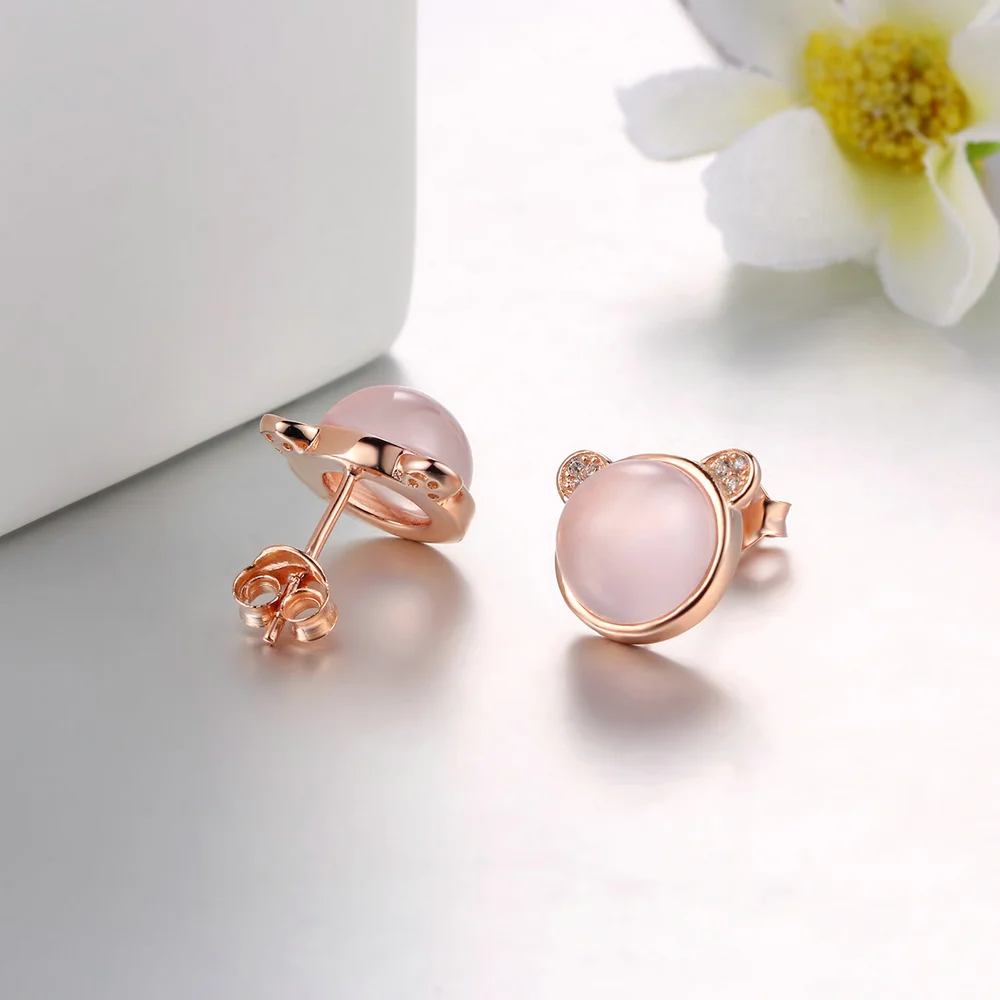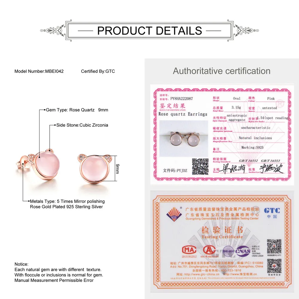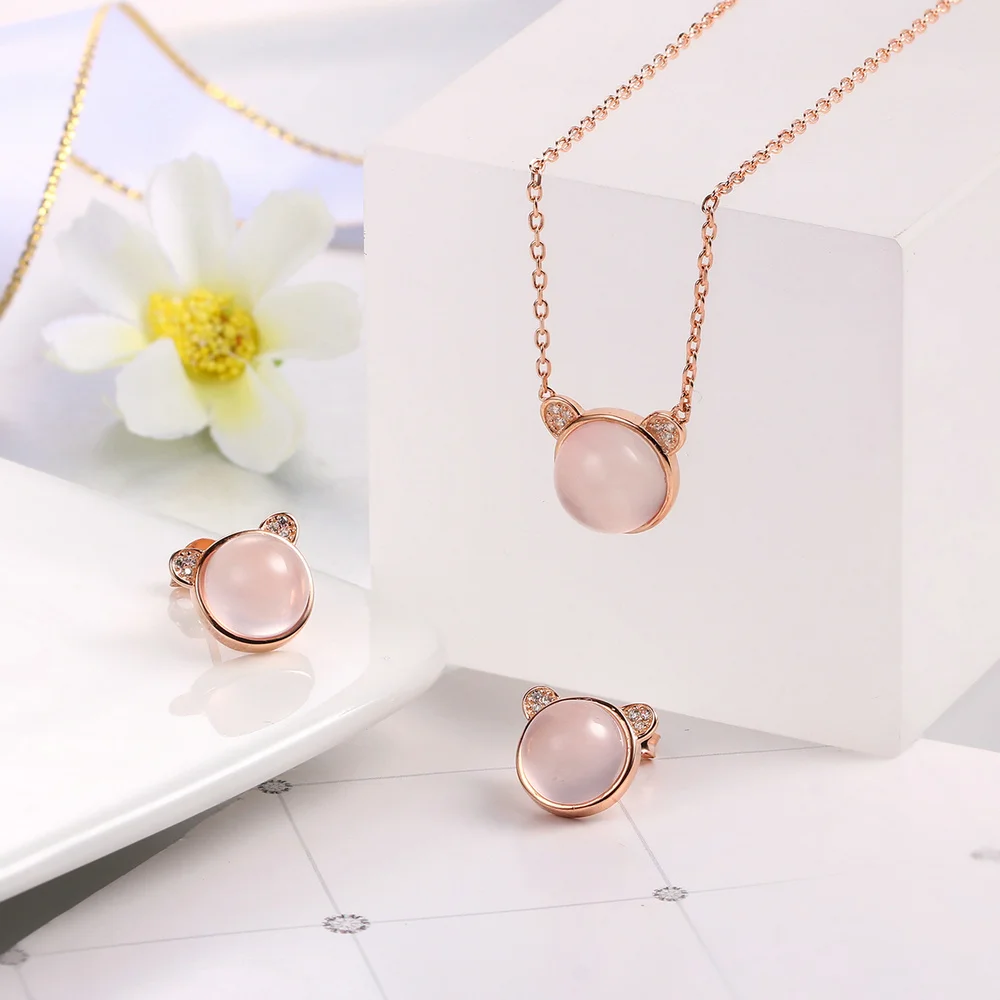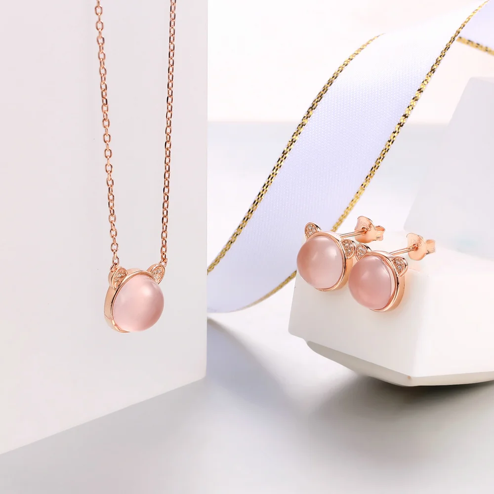 Romantic Rose Quartz Natural Gemstone 2pcs Jewelry Sets 100% 925 Sterling Silver For Women Party Gift Fine Jewelry V017EN